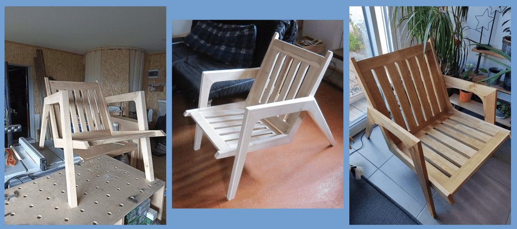 J'ai mis en photo d'accueil quelques images glanées sur internet pour m'aider dans la réflexion de la forme du fauteuil. Cette image pourra changer au cours de la réalisation du fauteuil sur les prochaines semaines.