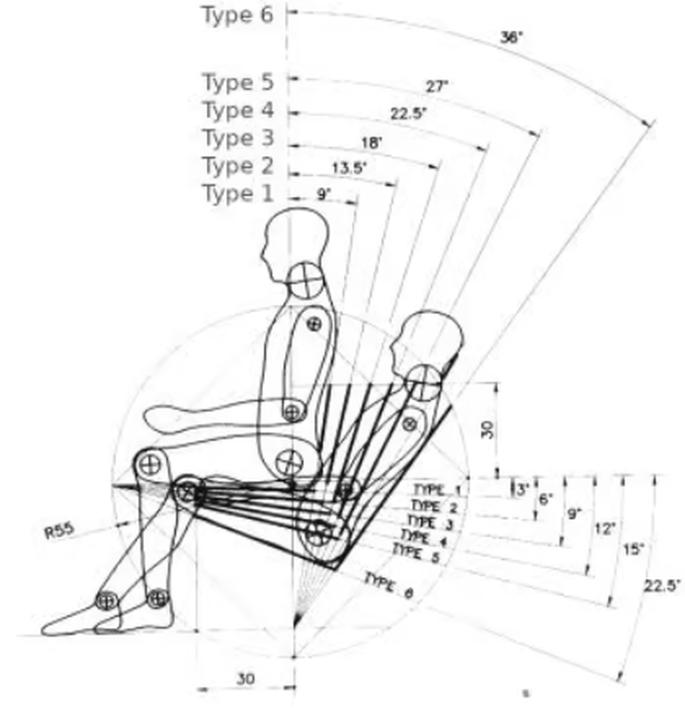 - Angle entre assise et dossier : 99° (c'est le type 3 du diagramme ci-dessus)