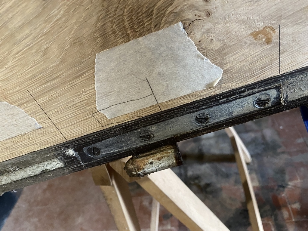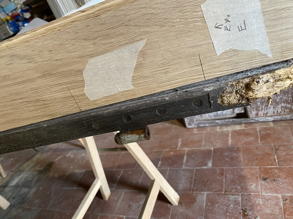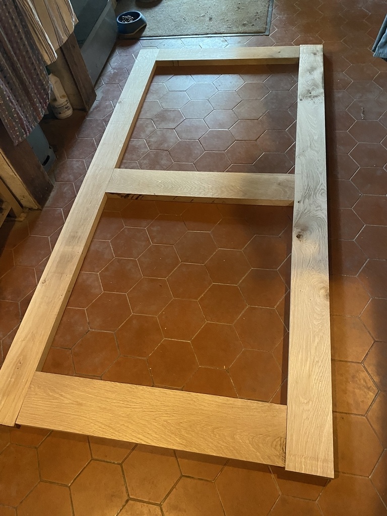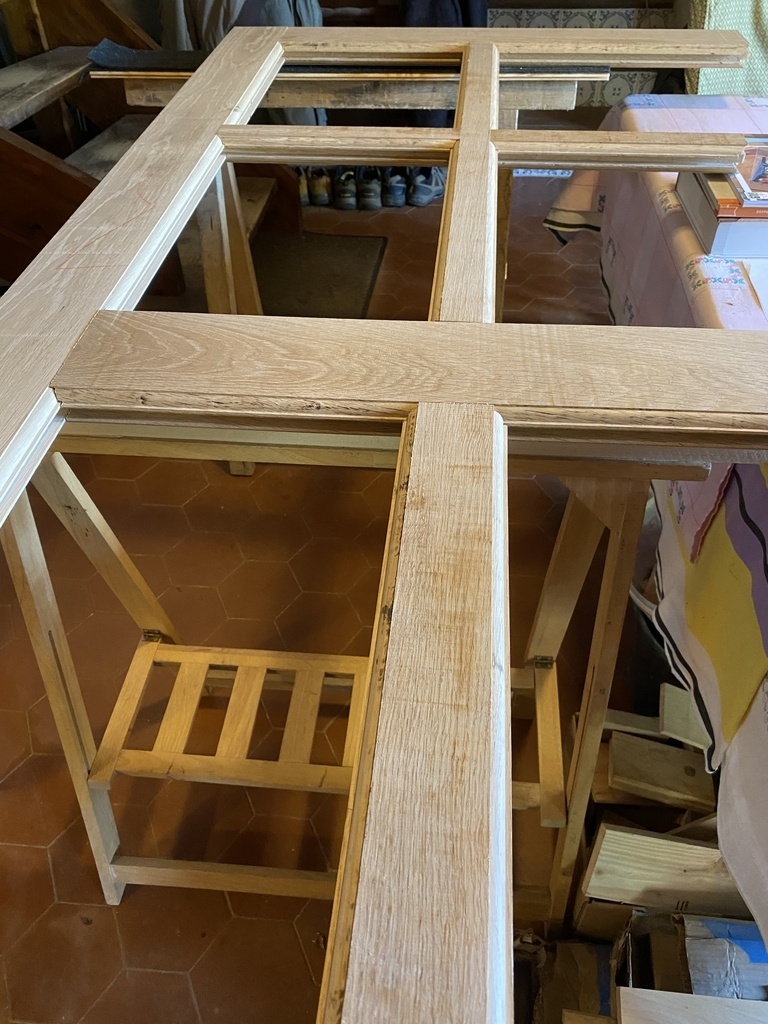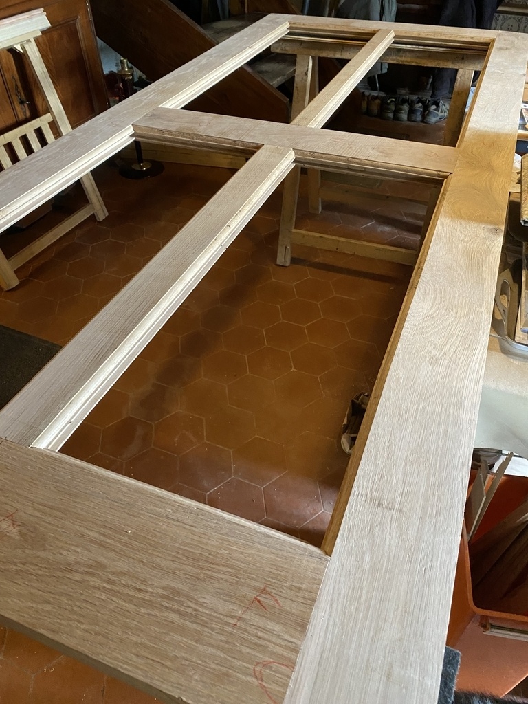 Donc je vais en refaire une, de la même épaisseur, 35 mm ; mais je garde le bâti bien qu'il soit également pourri en partie basse mais ce sera réparé .