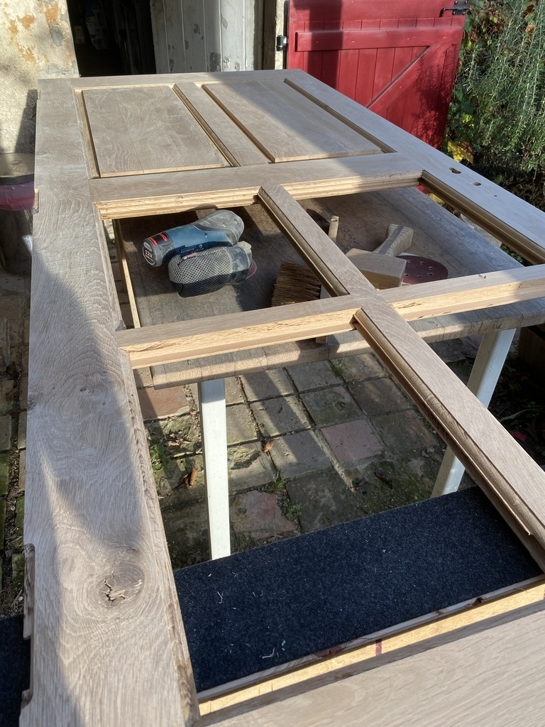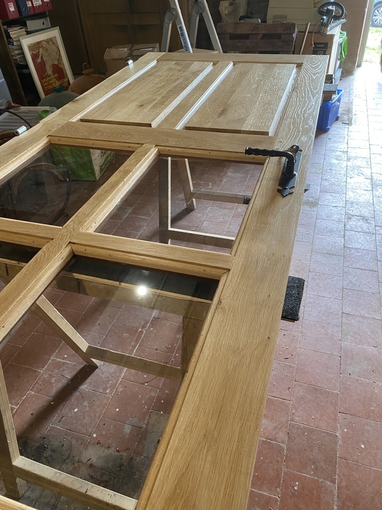 La vielle porte fait un poids dingue, les assemblages sont ferrés ...!