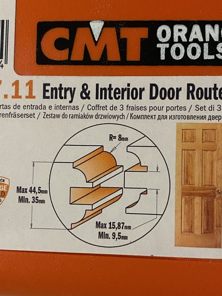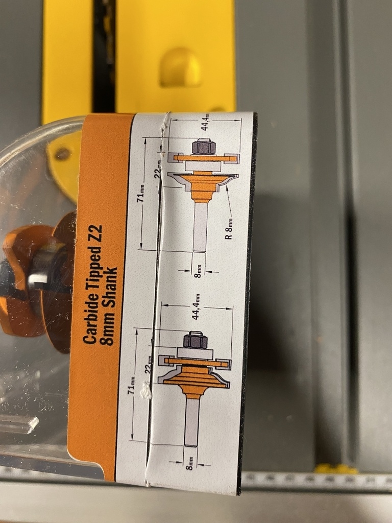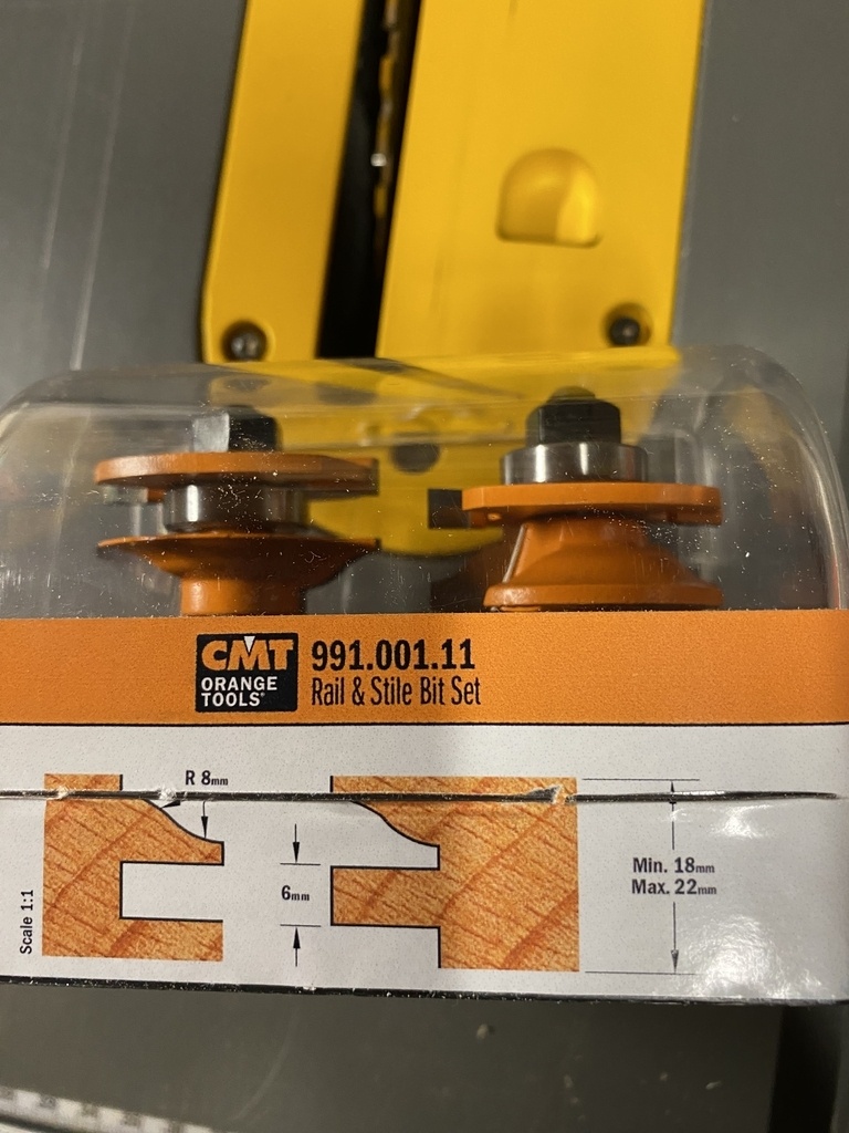 Comme j'ai prévu de faire un assemblage profil contre profil, j'ai pris un coffret de chez CMT Orange qui permet un usinage de 35 à 45 mm d'épaisseur .