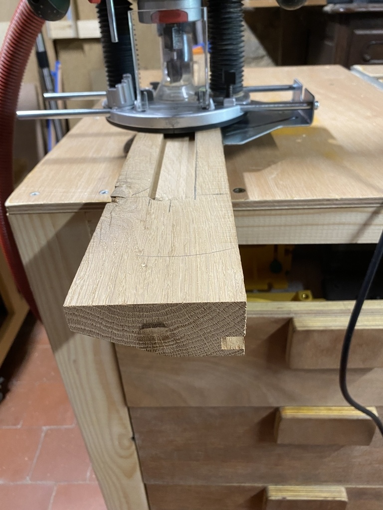 Montage à blanc avant d'usiner les tenons ; puis tenonnage .