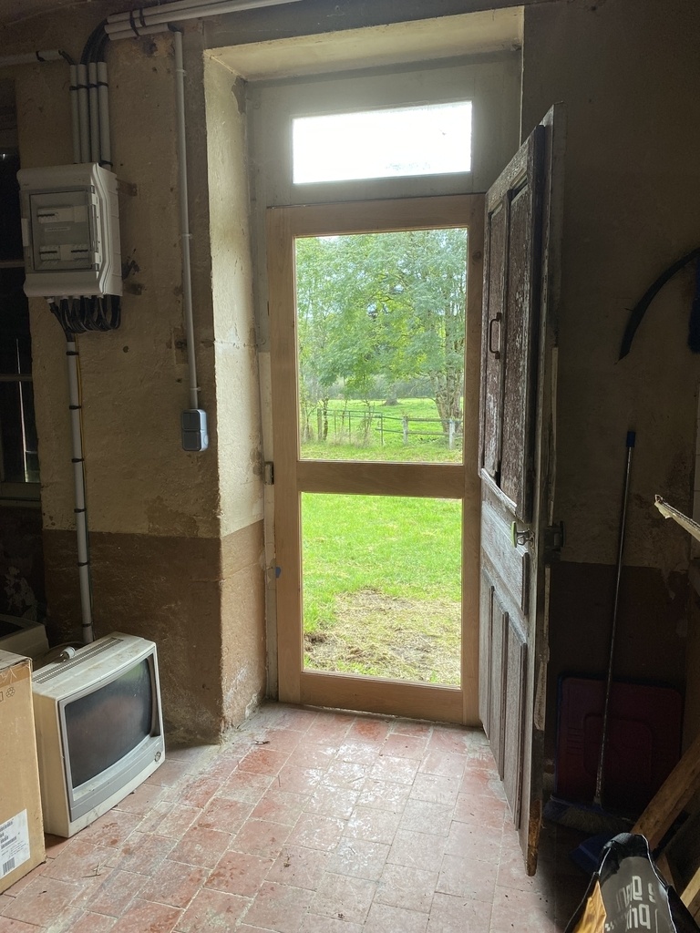 Les finitions du bâti avec l'imposte seront faites plus tard, la maçonnerie également .