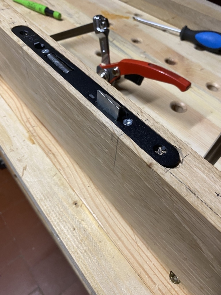 Pose de la serrure et d'une plinthe encastrée automatique .