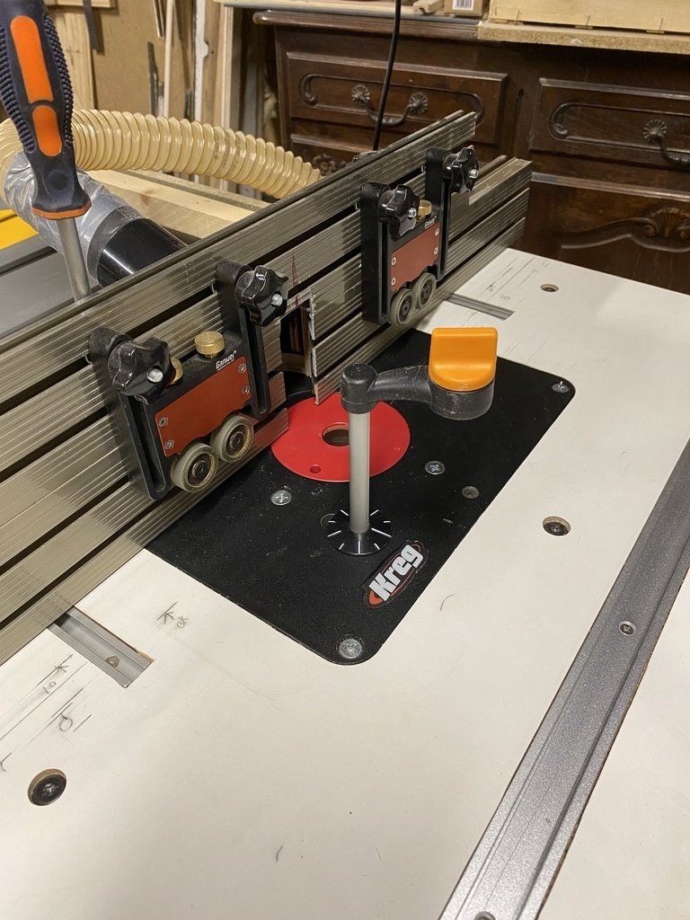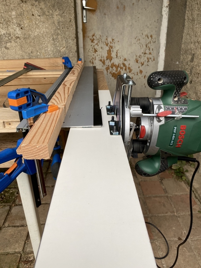 Je fais un montage avec ma défonceuse Bosch, une plaque de valchromat et avec la règle, bien calée, de la scie plongeante ça va le faire .