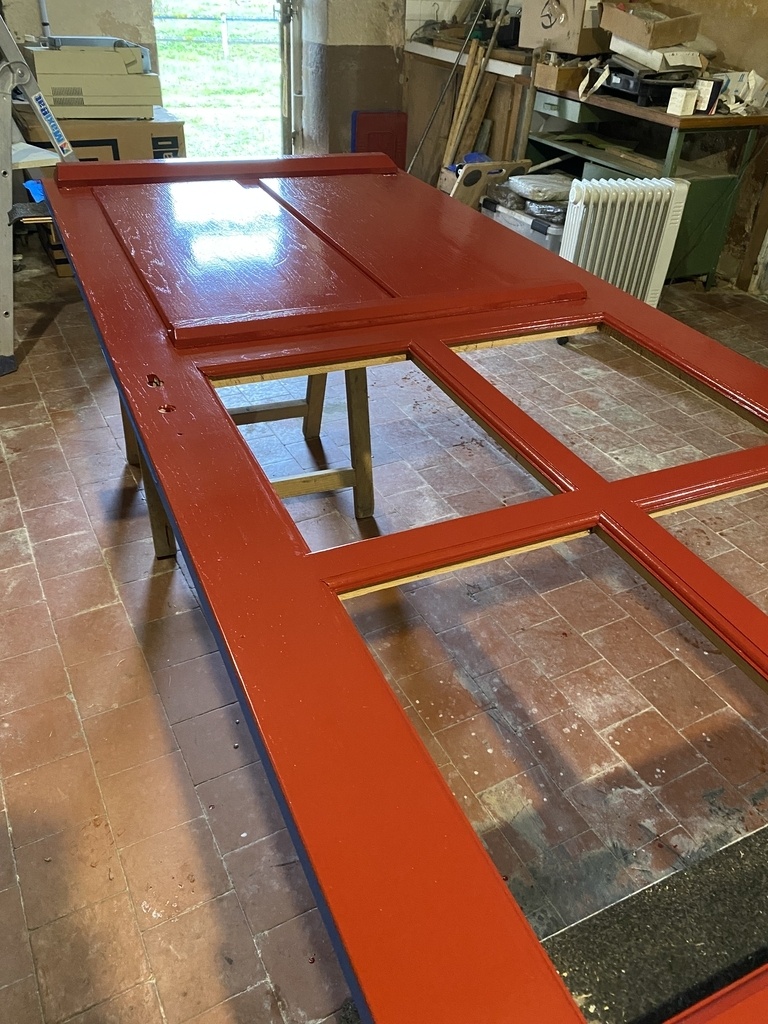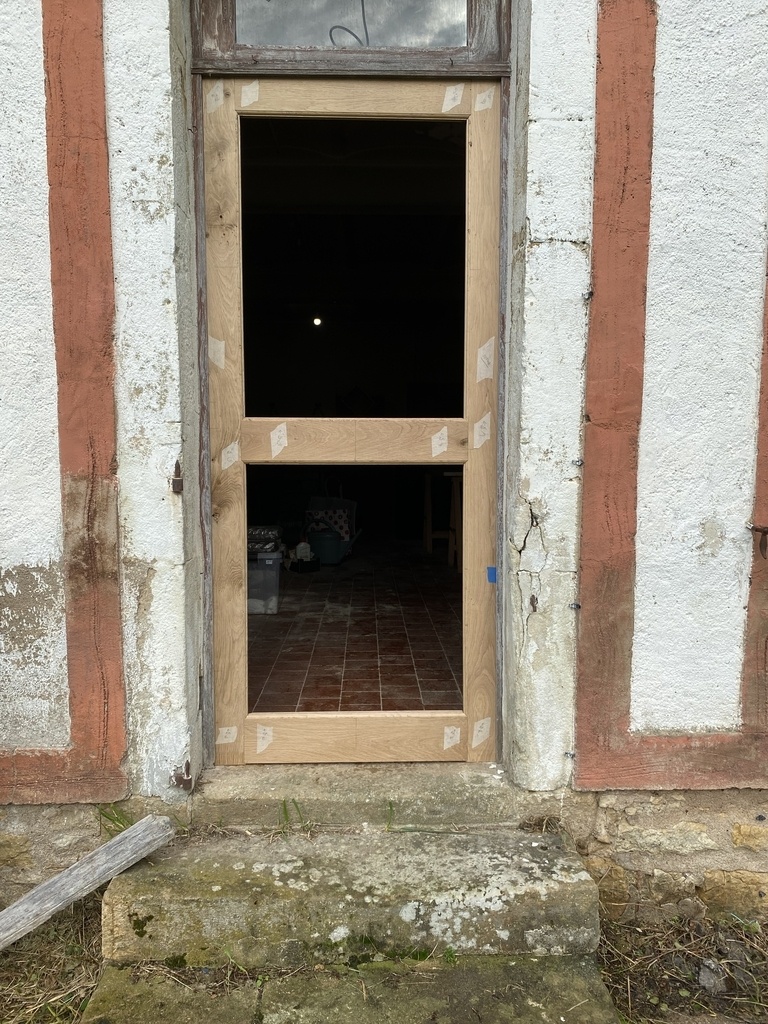 pour la fabrication d'une porte pour l'atelier d'une amie dans un bâtiment de ferme .