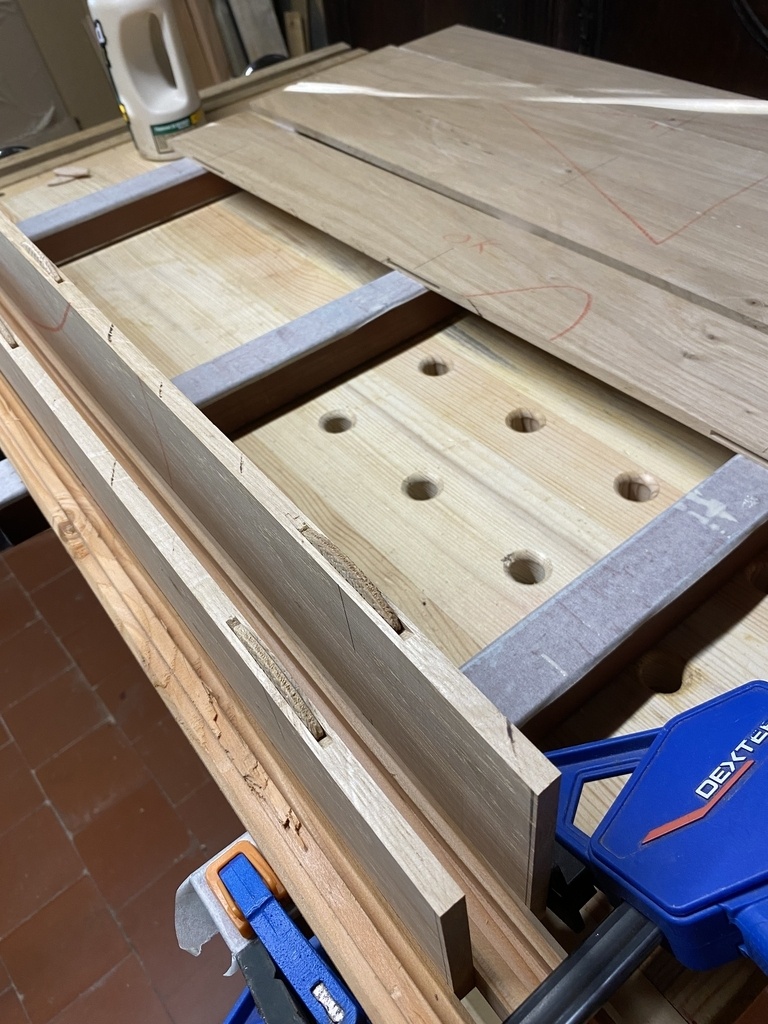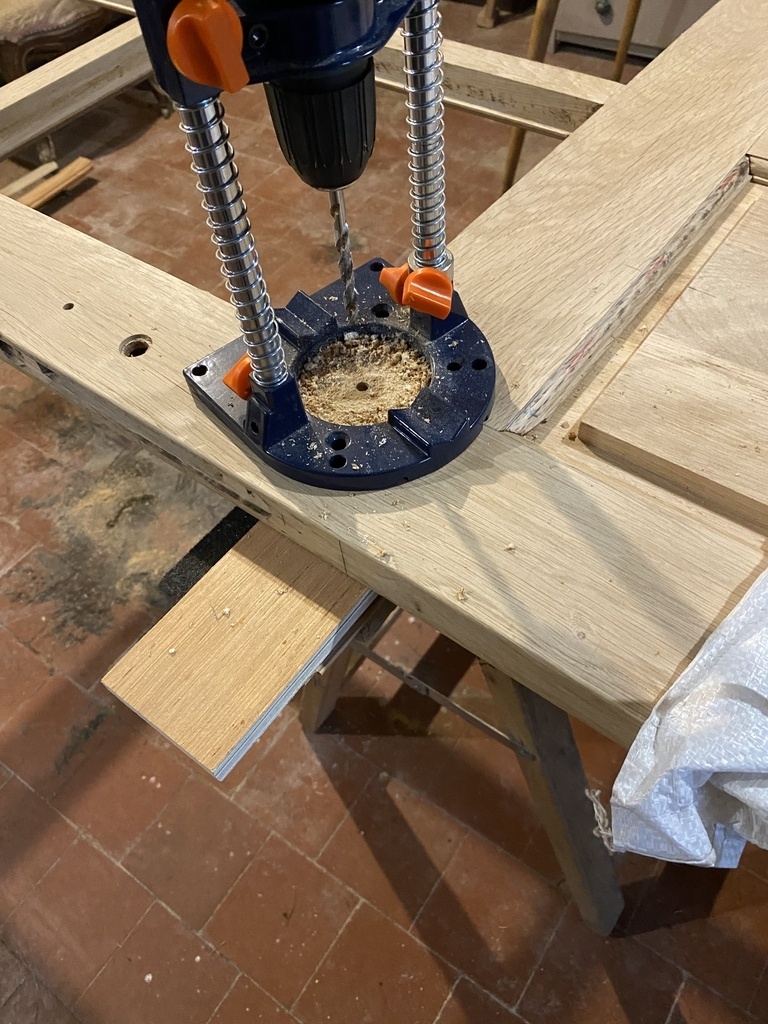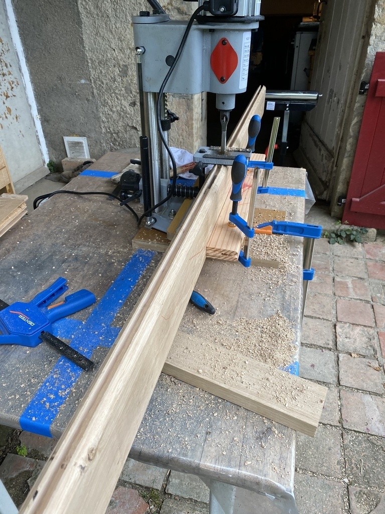 Je vais cheviller ; peut être que ce n'est pas indispensable puisque les assemblages sont collés ; mais pour le plaisir d'apprendre et de faire .