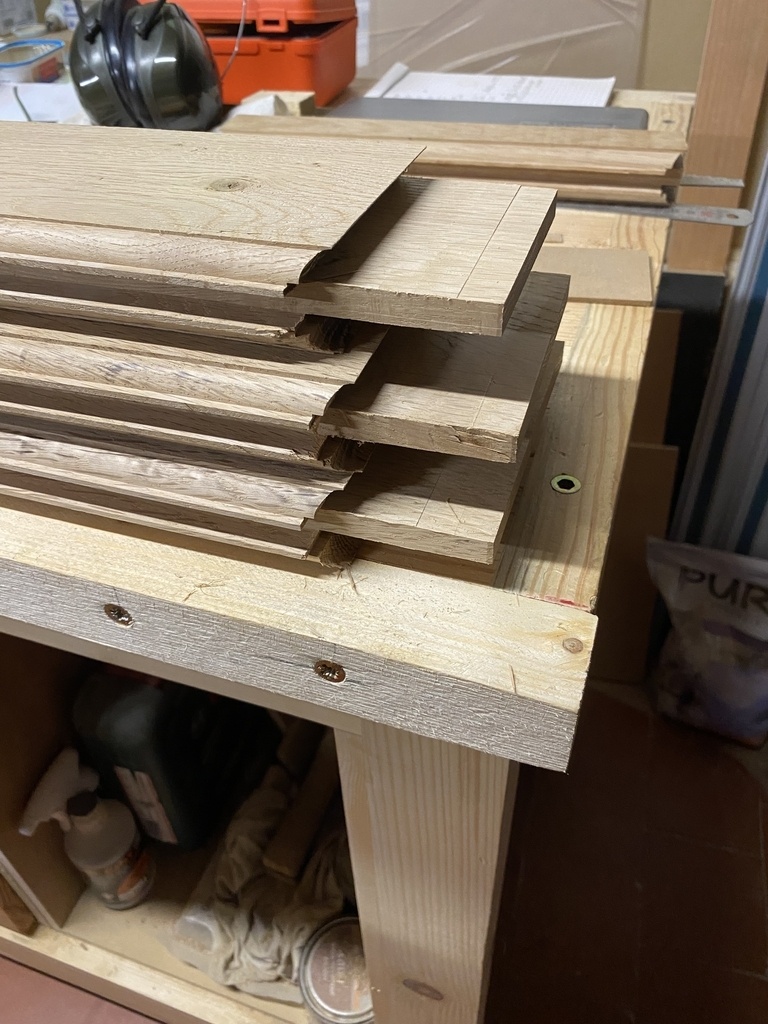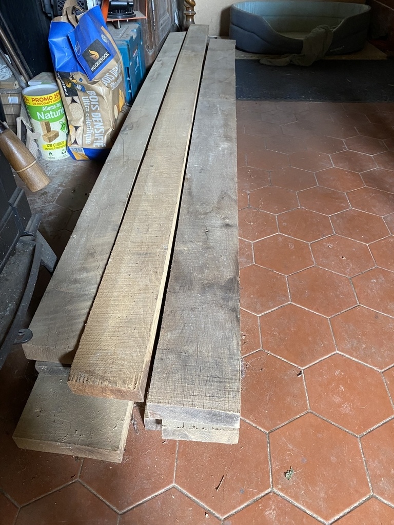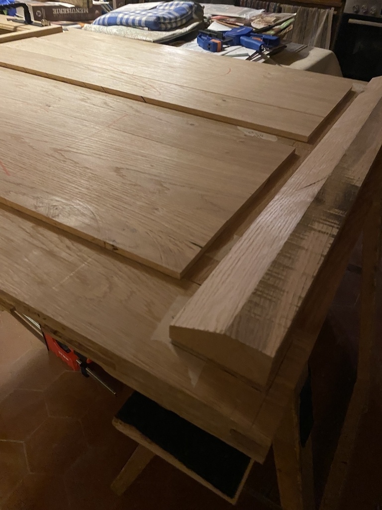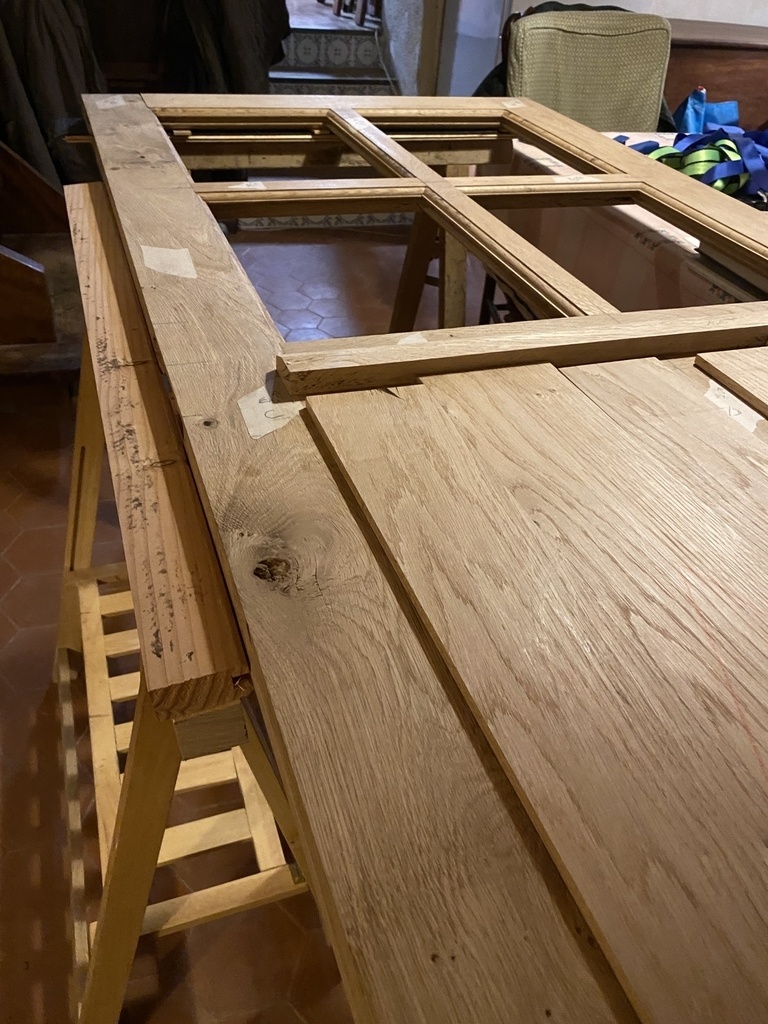Je rassemble les planches que mes amis m'ont fournies ; c'est du chêne et à ce moment précis je suis incapable de dire si les planches sont faites ou pas pour une porte, pas grave je ferai avec .