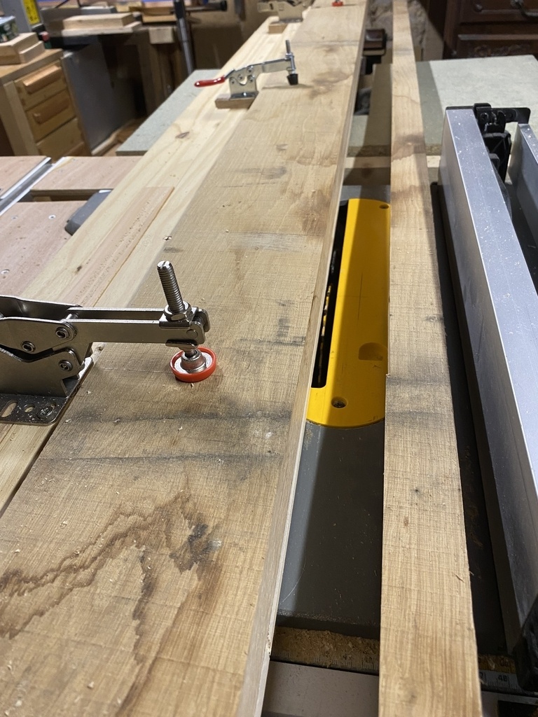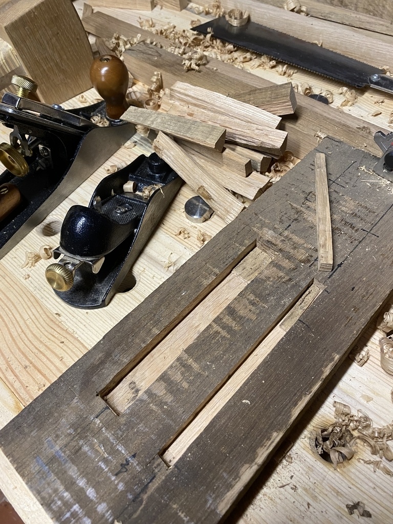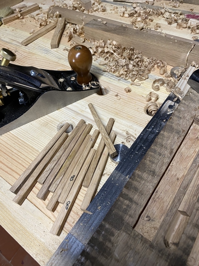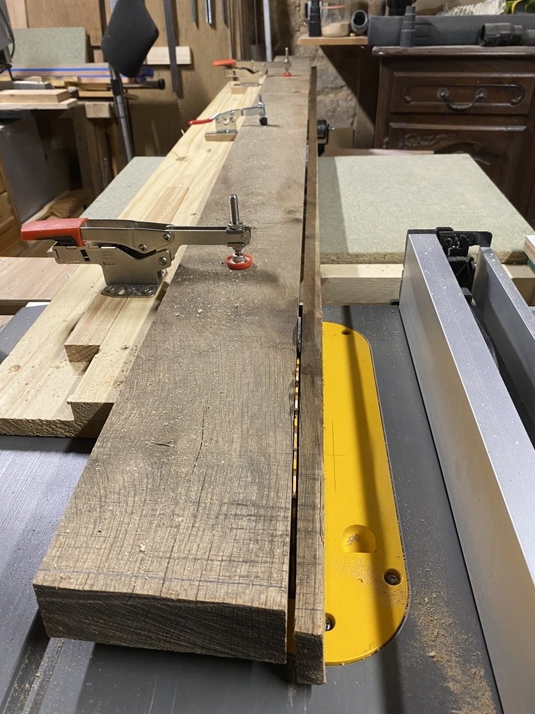 Je passe au corroyage avec les mêmes soucis de place mais avec de la patience et un peu d'organisation ça le fera ; et puis je me dis que je n'ai que deux montants à faire .