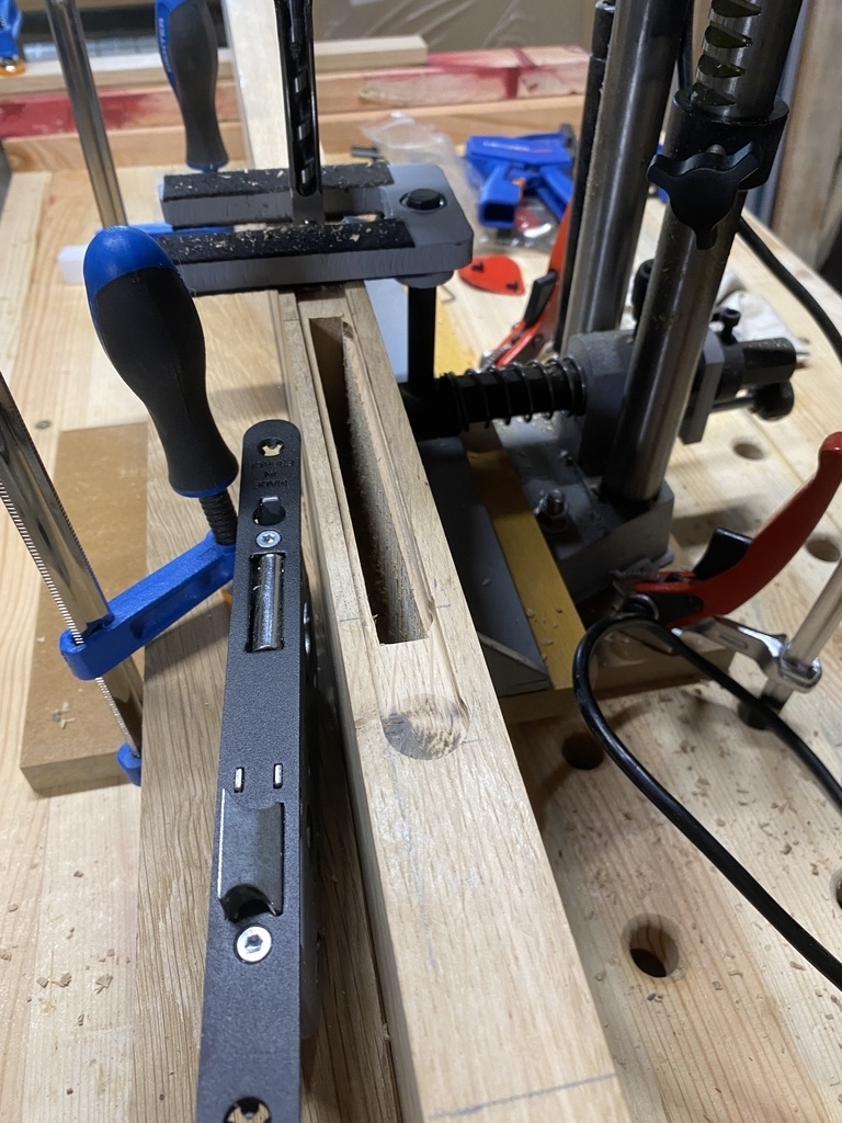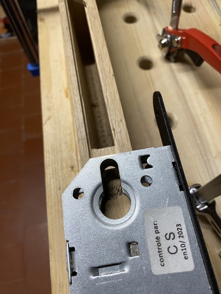 Retour sur ma mortaiseuse à bédane pour le coffre de la serrure ; encore une première pour moi .