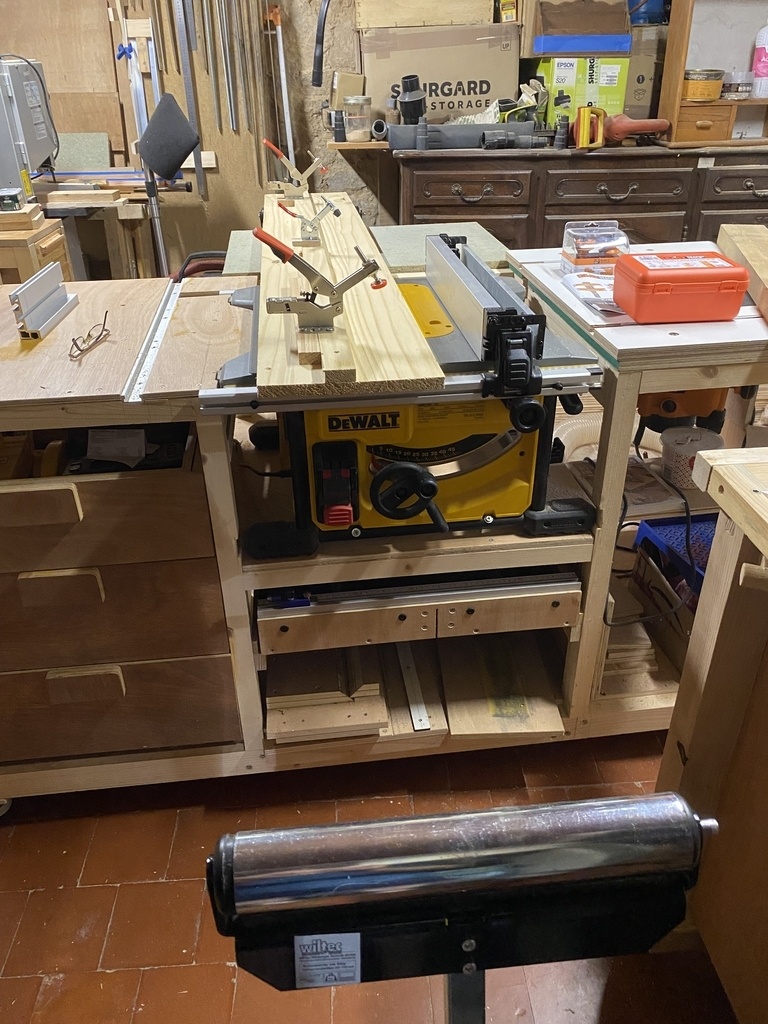 Pour le débit j'utilise une scie Dewalt que j'ai installée sous table .