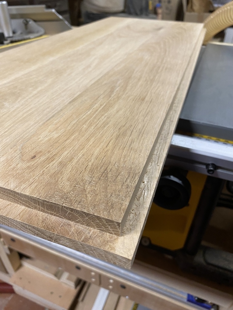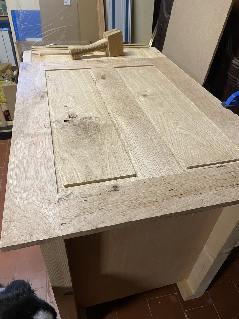 J'ai hésité à le faire en contre plaqué, je voulais qu'il soit léger ; mais finalement je reste sur un panneau de chêne, le plus mince possible .