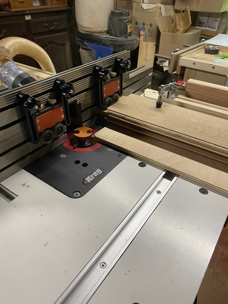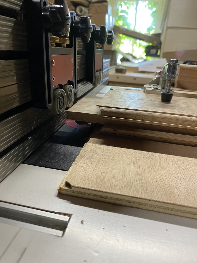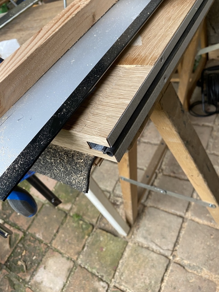 Et c'est parti pour le profilage des montants et des traverses ; après quelques essais et réglages .