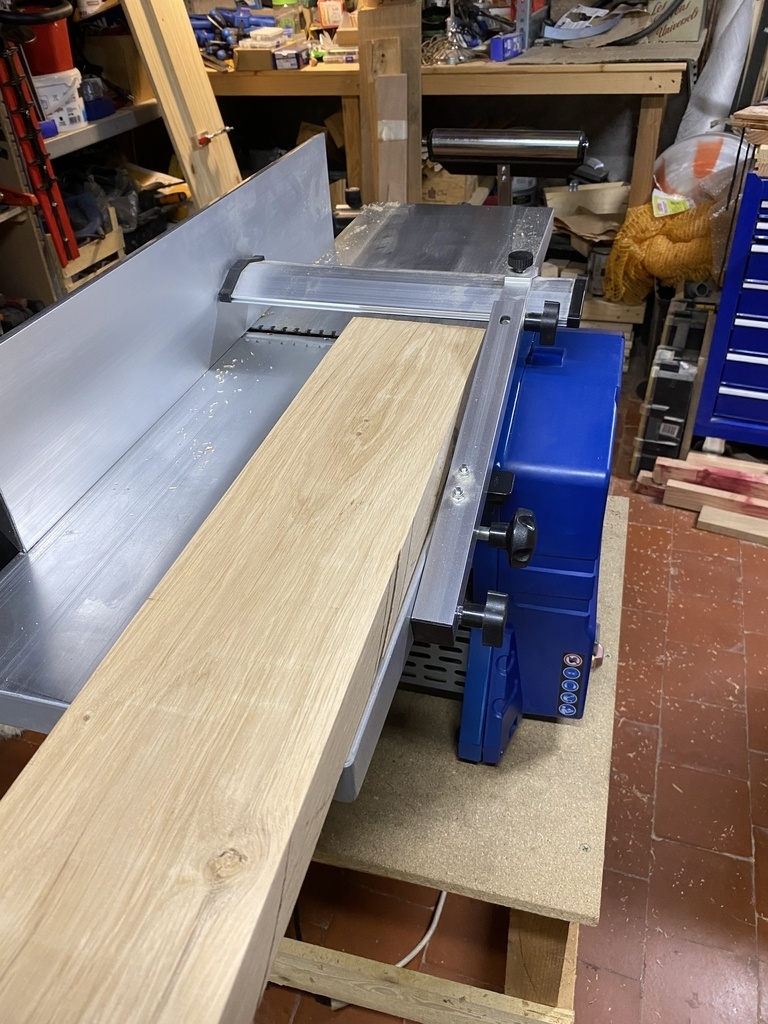 Pour le corroyage j'ai une petite dégo-raboteuse Scheppach, c'est pas cher et finalement ça fonctionne très bien avec des fers affutés .