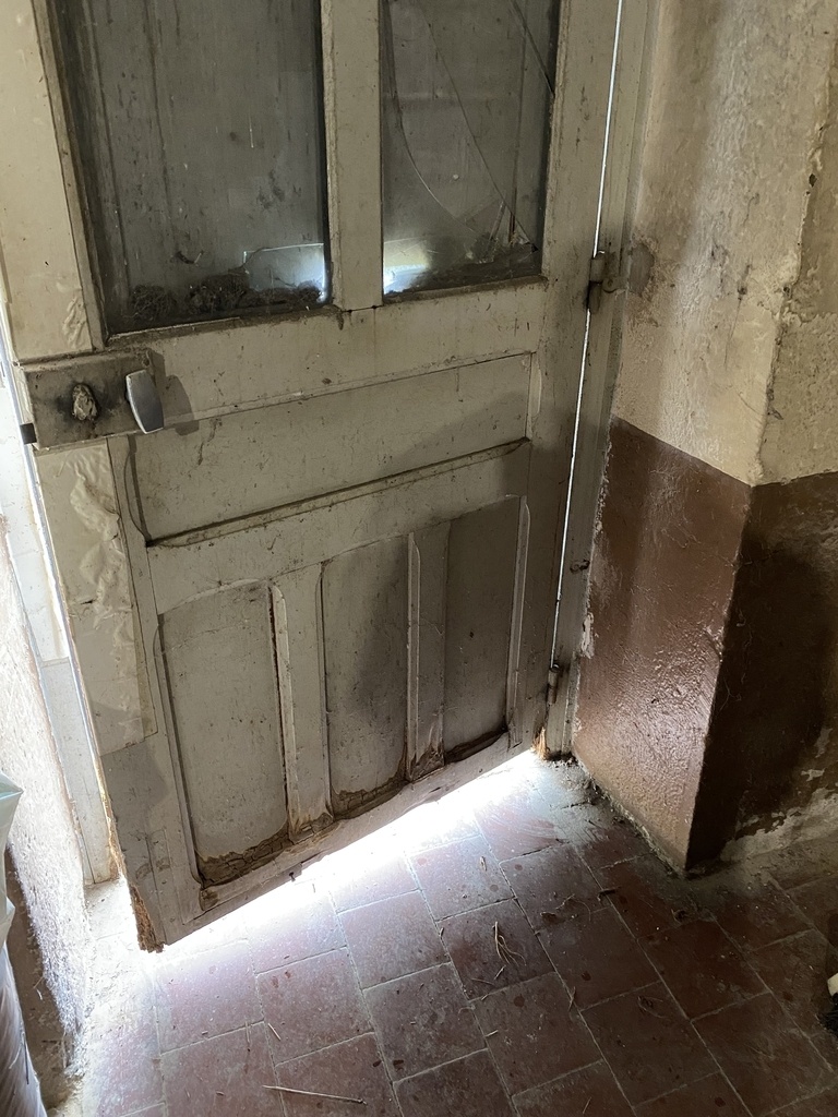 Ouf, ça semble correspondre ; et j'enchaine avec cette fois le dégondage de la vielle porte pour tracer les paumelles sur le montant adéquate de la nouvelle porte .