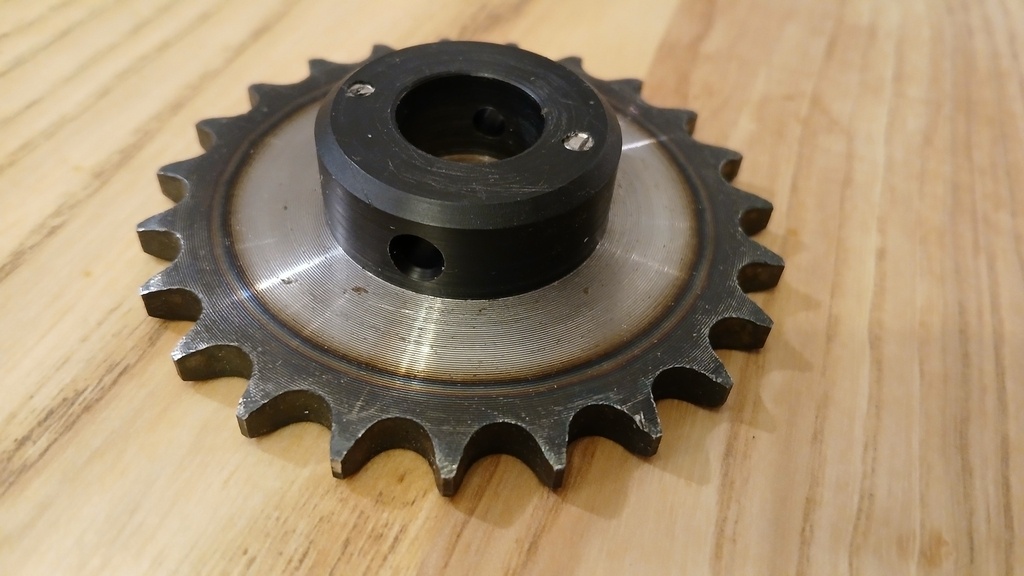 Et voilà! L'opération est assez rapide et pas très onéreuse, la seule difficulté étant l'usinage du moyeu du pignon!