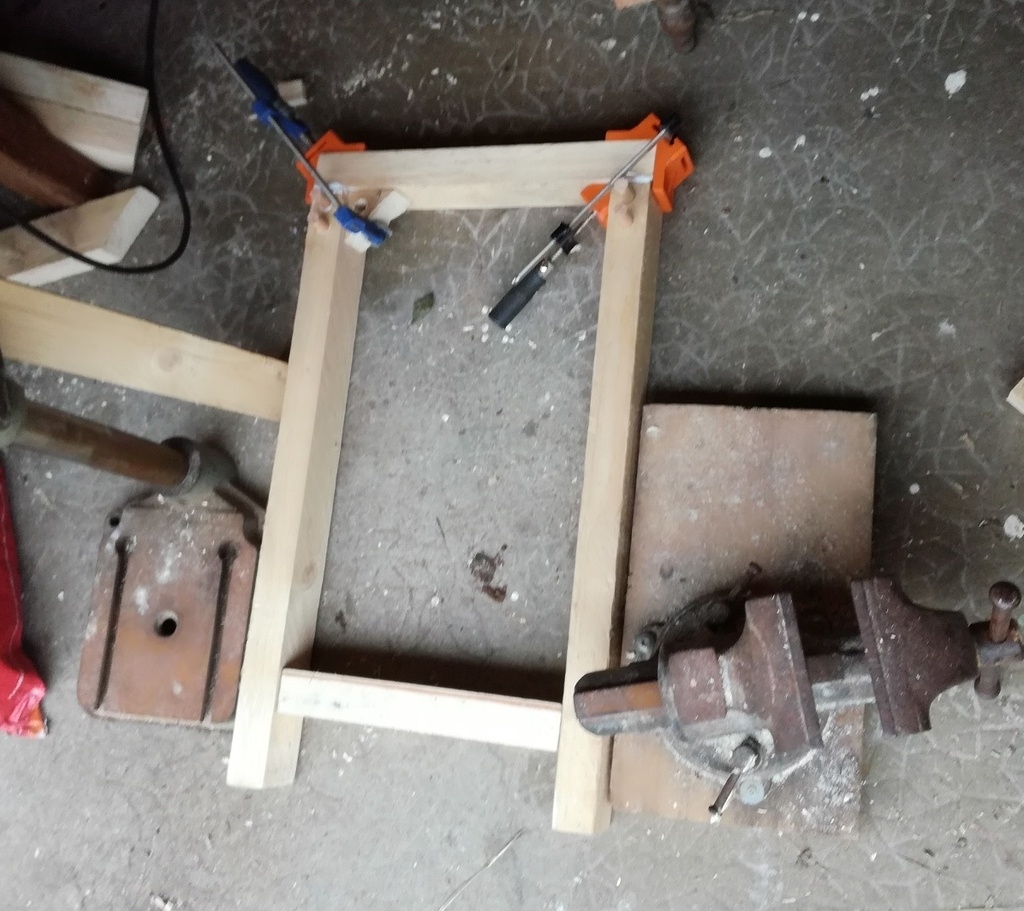J'ai commencé par 3 pièces du bas, puis assemblé 2 cadres latéraux, que j'ai relié entre eux