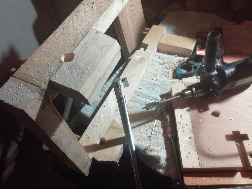 J'ai découvert la mèche plate (ici 20mm), beaucoup moins chère que l'hélicoïde, et ça perce vite.