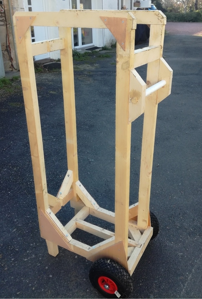 Un matin de début novembre, le lendemain du premier remplissage de la saison du bûcher à côté du poêle (0,7x1,2x0,9 , j'aime traiter en gros, avoir de l'avance, ne pas rentrer par petites quantités ), je me suis levé en me disant : mais au fait, pourquoi charger puis décharger? On pourrait amener une grosse quantité sur roues, il n'y aurait que le chargement à faire.