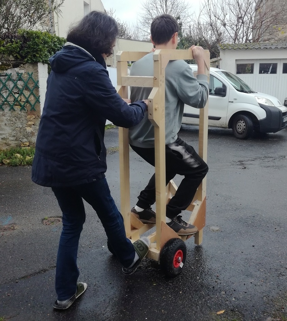 Enfin, c'est pas très droit. D'ailleurs, mon chariot est terminé mais il n'a pas encore été éprouvé avec un chargement, ni des dizaines, je ne sais pas ce qu'il donnera sur le long terme. Bref!