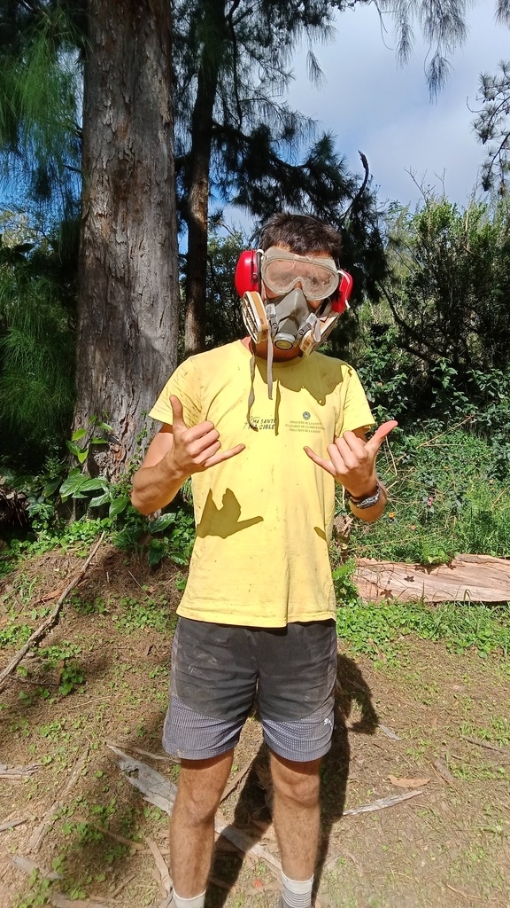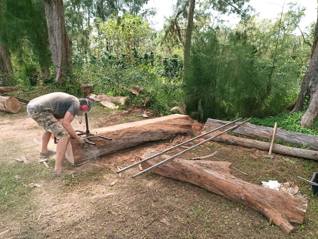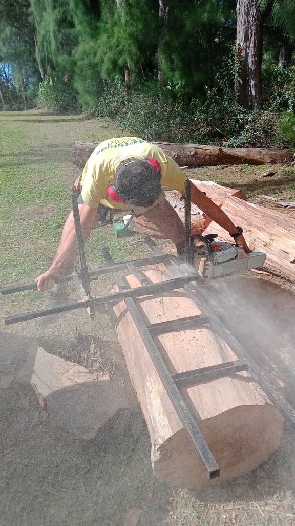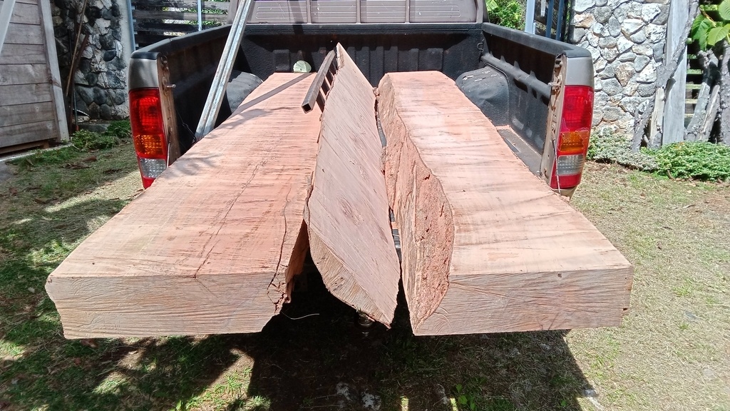 Ce tronc de bois de fer avait été abattu quelques mois avant que nous le découpions en plateaux, par les services de l'agriculture de l'île.