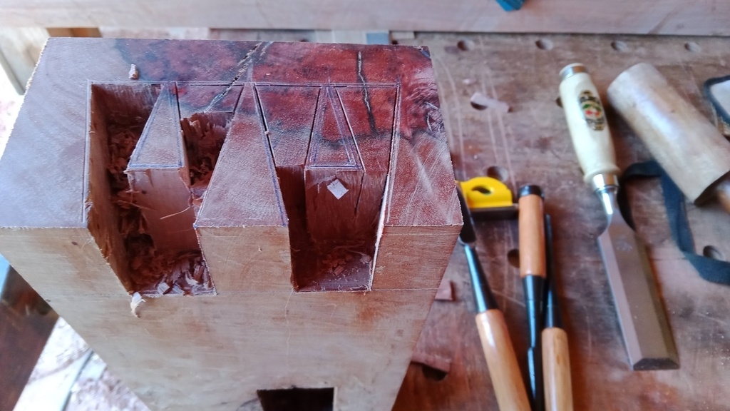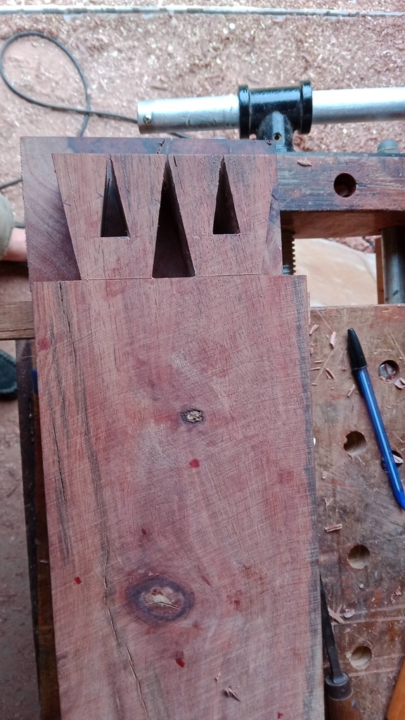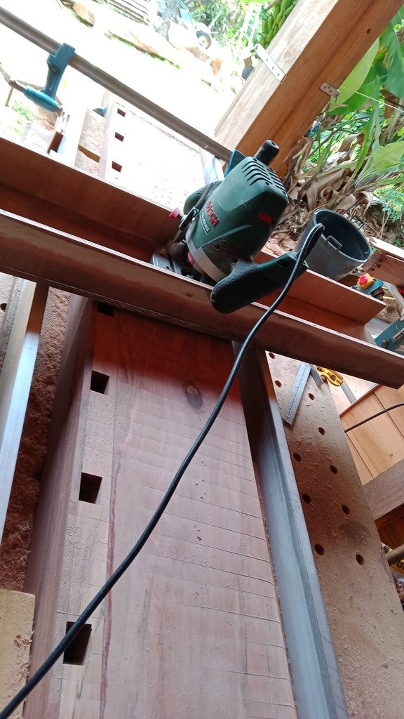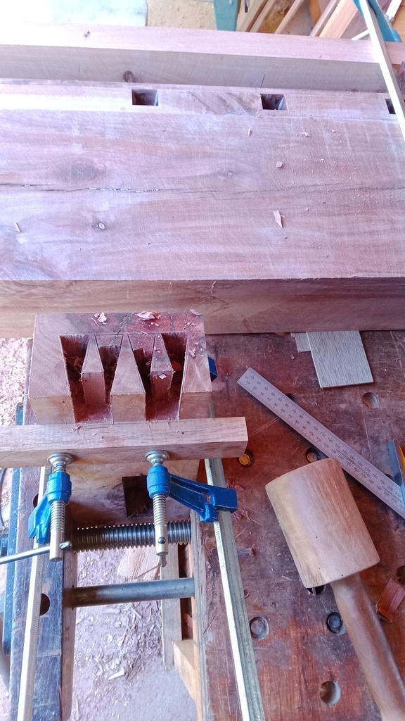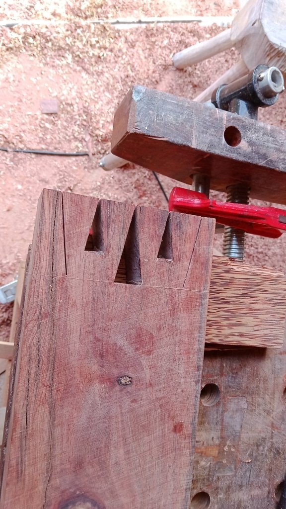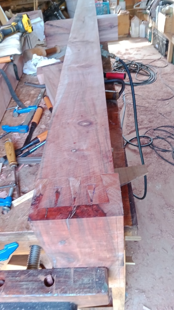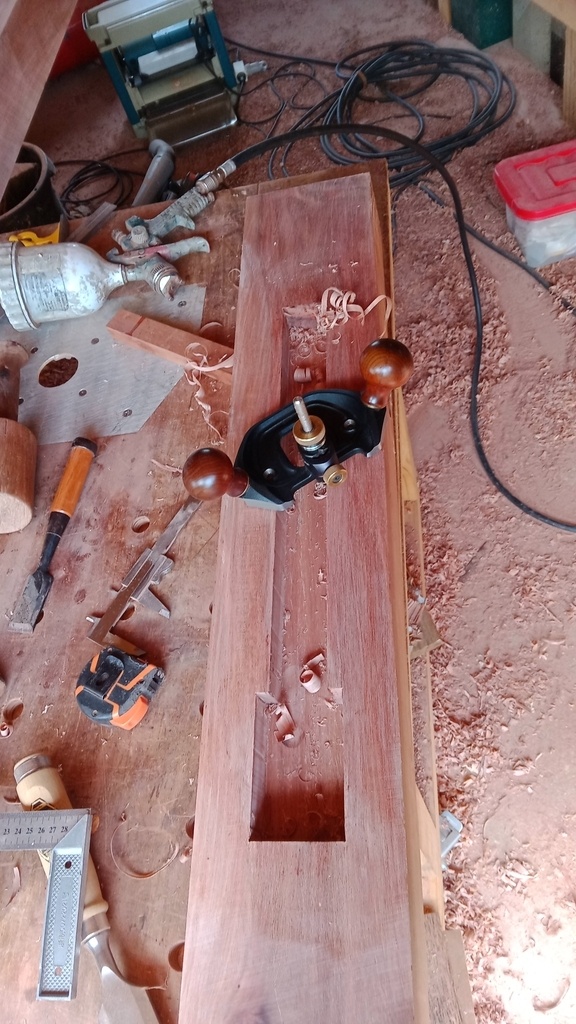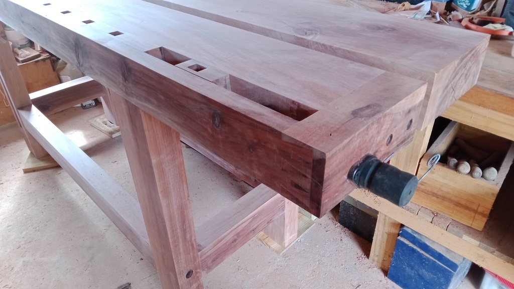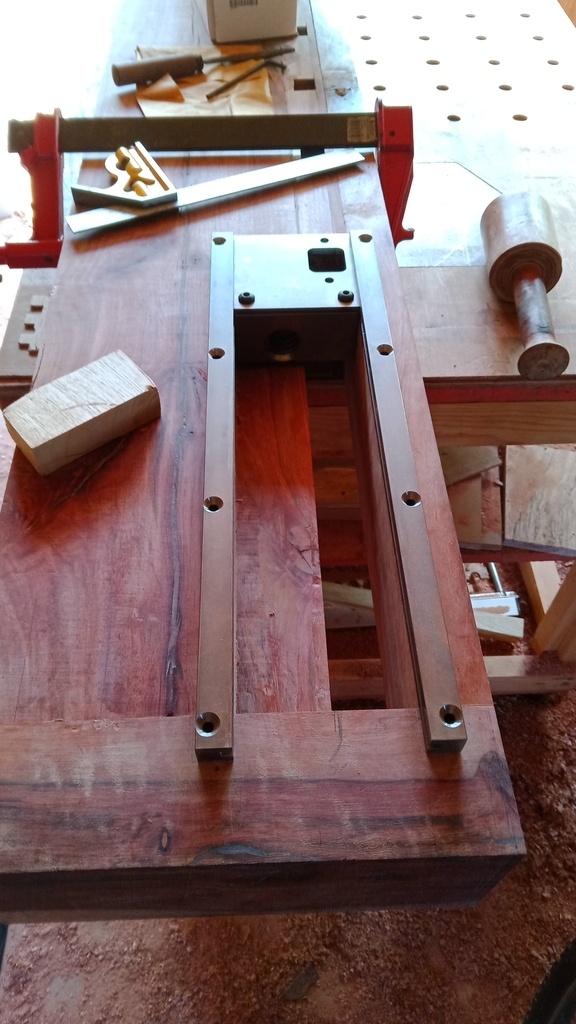 Le rail de la presse de bout a été façonné à la défonceuse et terminé aux ciseaux à bois