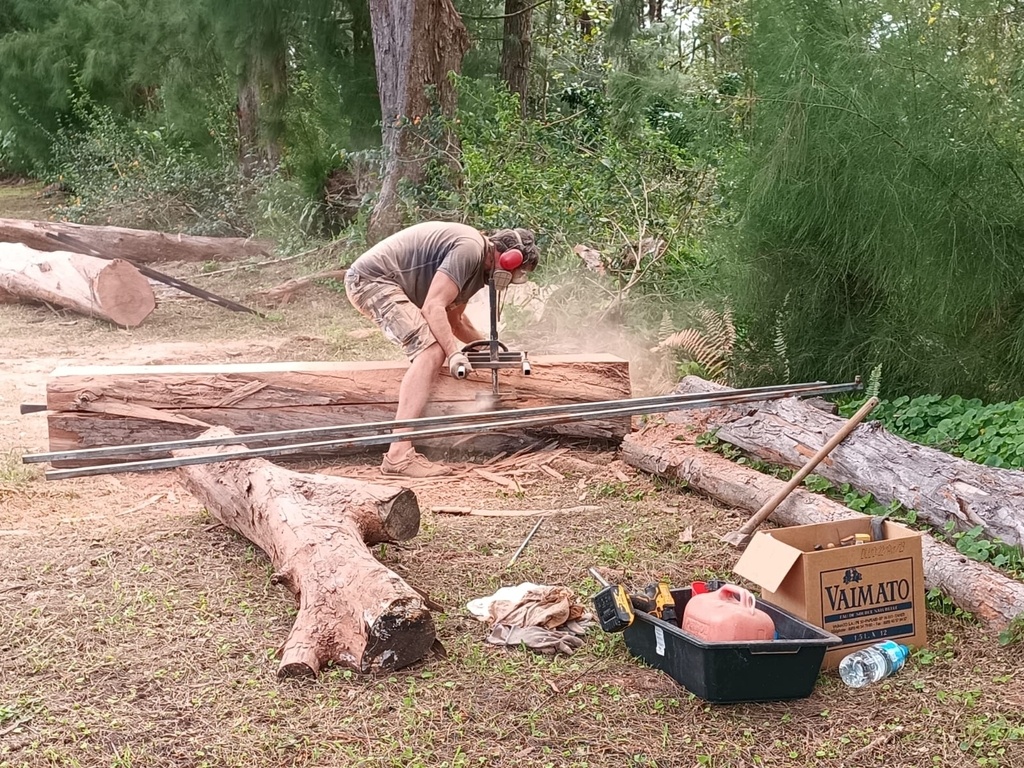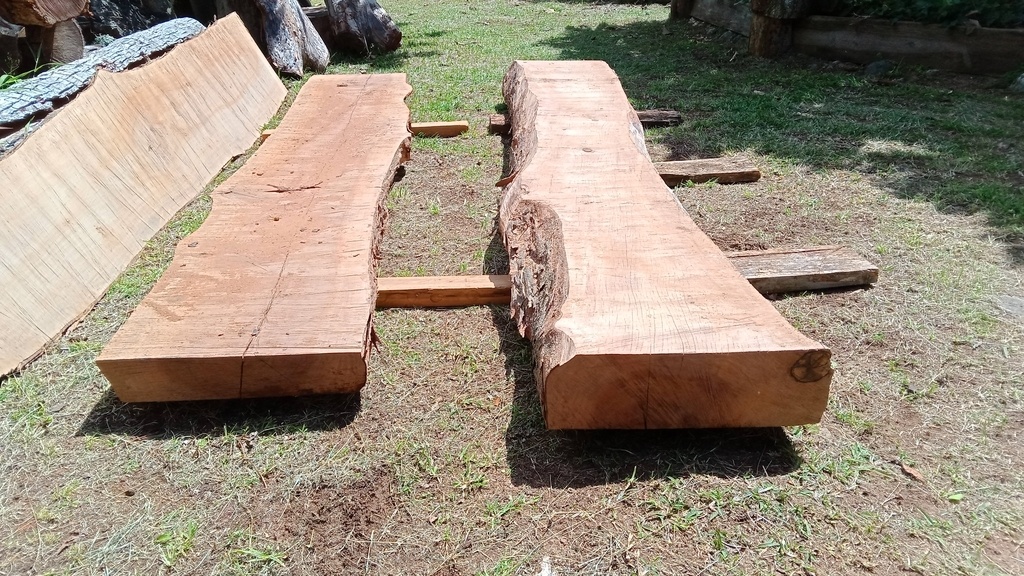 Ce bois à la réputation d'être extrêmement dur et lourd (dureté Monin moyenne 10.2, densité moyenne 1050 kg/m3). Réputation non usurpée, nous avons mis deux après-midi entières, mon fils et mois à découper les plateaux à la gruminette en affutant la chaine de tronçonneuse à chaque passage.
