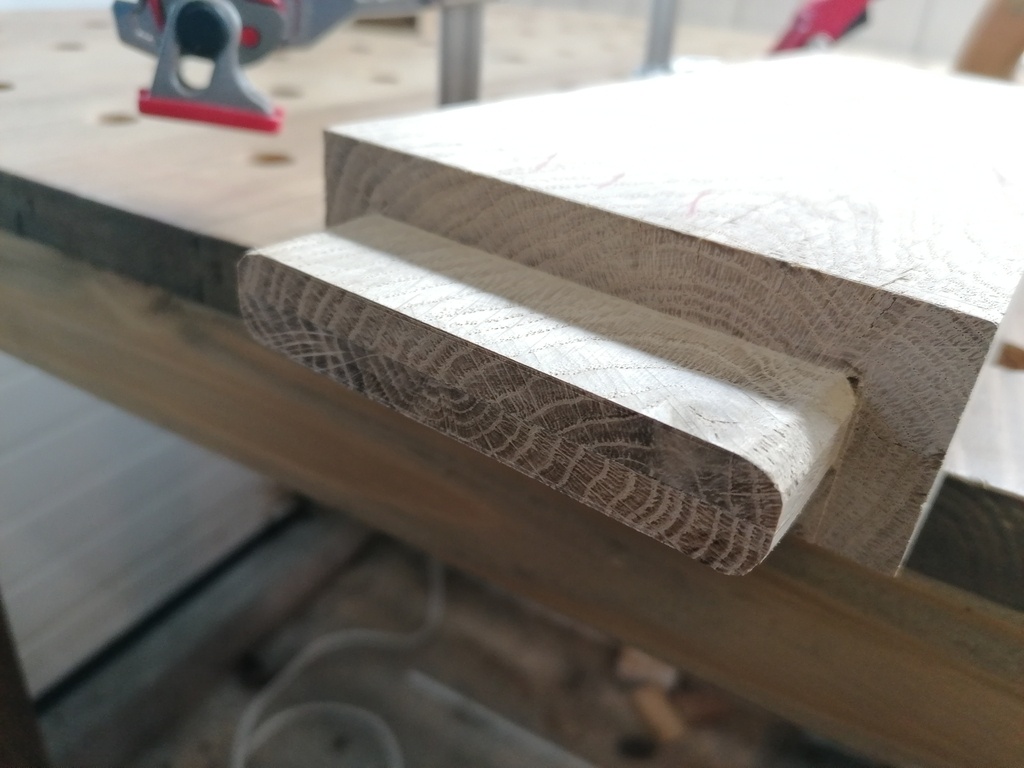 Enfin, j'ai décidé cette fois-ci de m'essayer à arrondir les tenons, plutôt que d’équarrir les mortaises comme j'avais pu faire sur mon projet précédent, des bancs jumeaux.