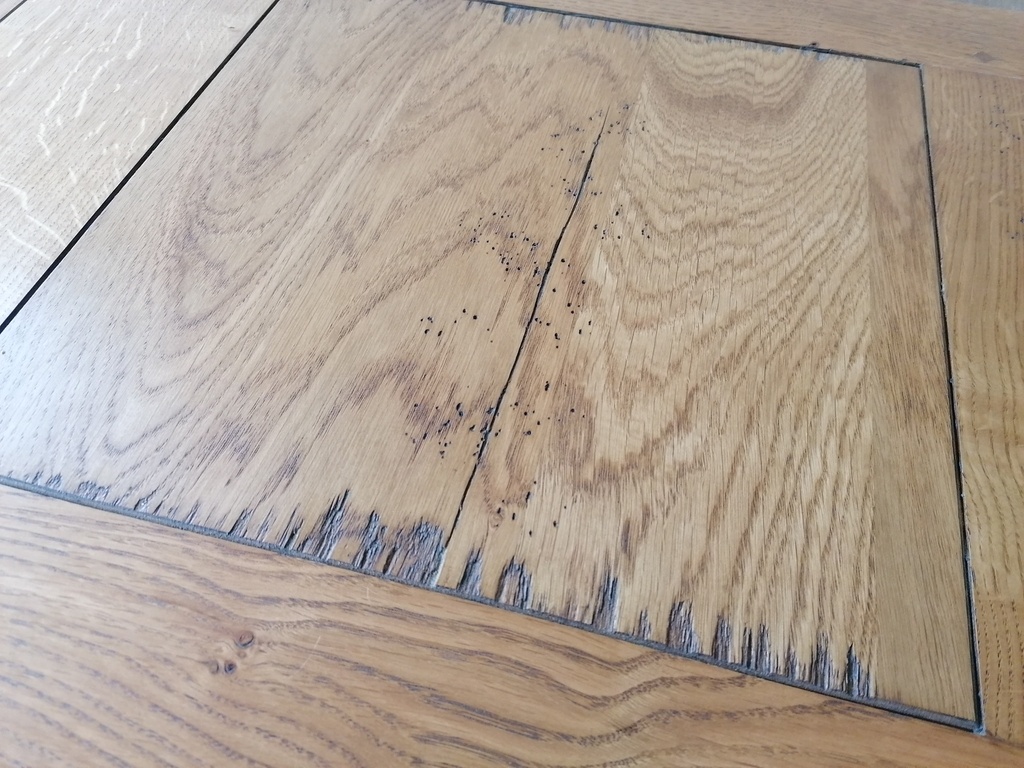 Ah si aussi! J'ai fait une boulette, dans le même genre que la précédente bien sur... Sur mes panneaux, lors du collage j'ai eu des taches noires provenant de mes serres-joints et de la colle.