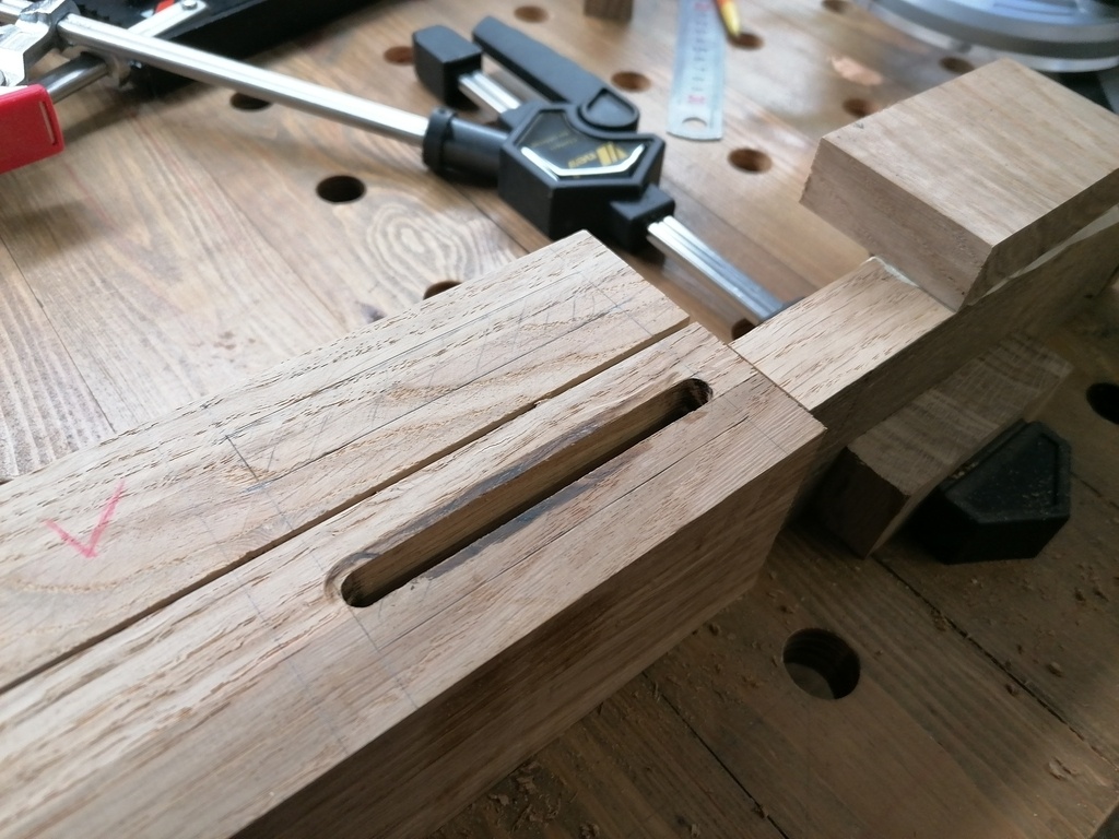 Conclusion, j'ai trouvé qu'arrondir les angles c'est + rapide et agréable a faire avec un ciseau et une grosse rappe, que d'équarrir les angles des mortaises.