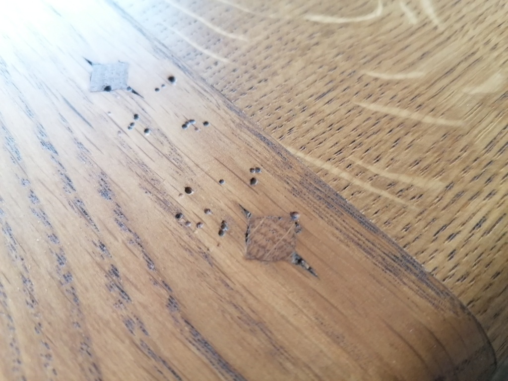 Mais pour celles déjà faites, j'ai ajusté ça à la main, via un bloc pour servir de guide et au ciseau à bois.