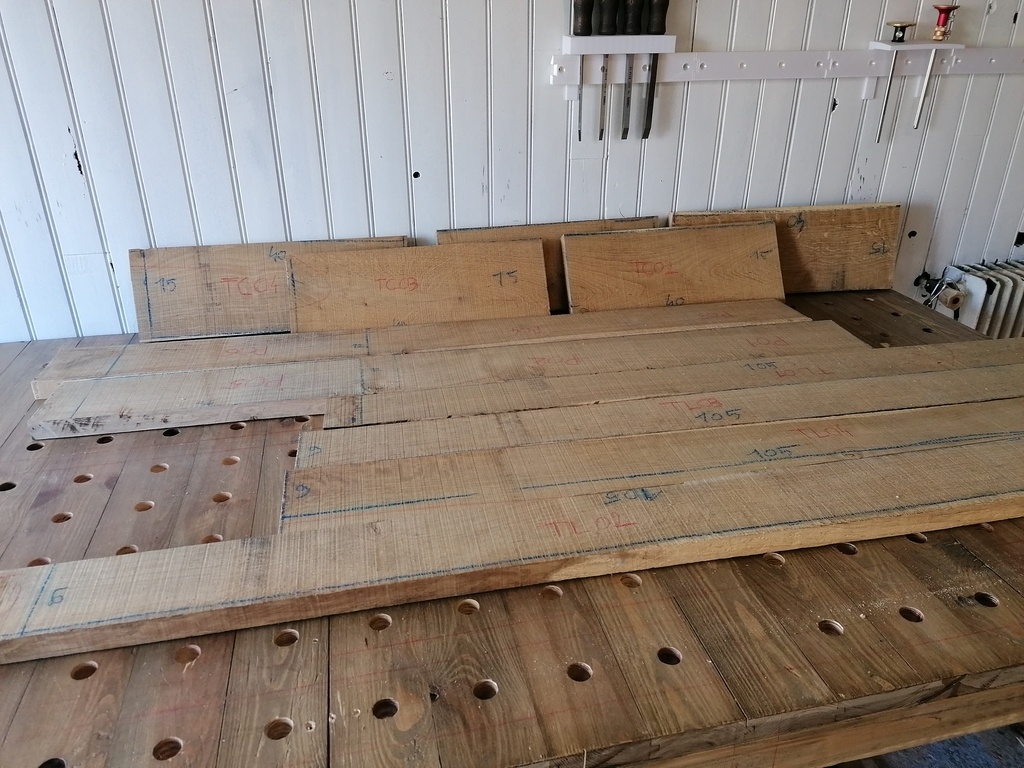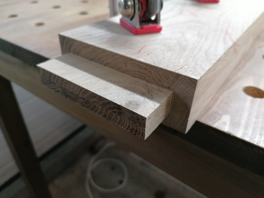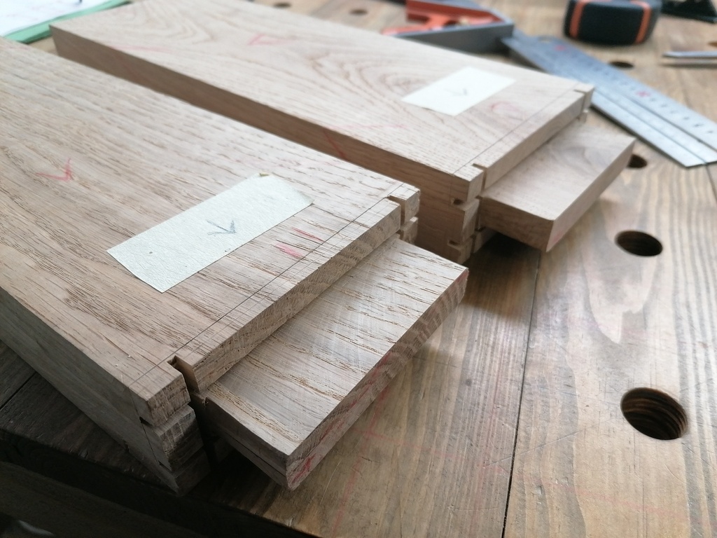 Une fois mes bois degauchis et rabotés, j'ai commencé la réalisation des assemblages.