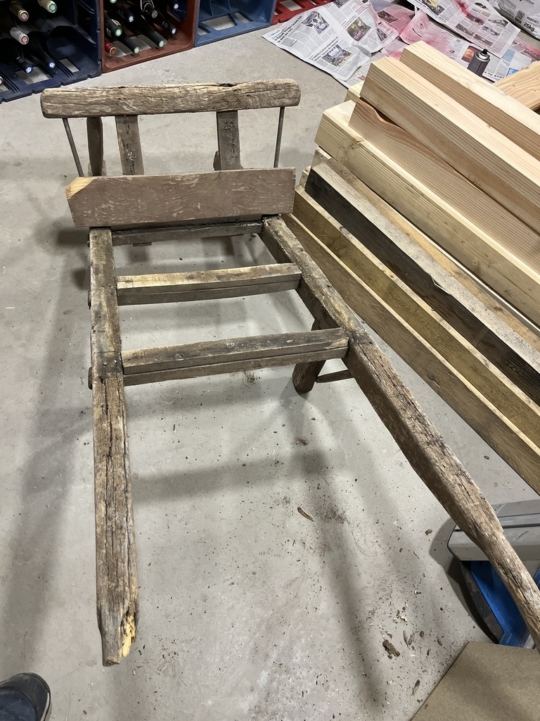 Héritage d'une vieille brouette à foin du beau père que je devais remettre en état..