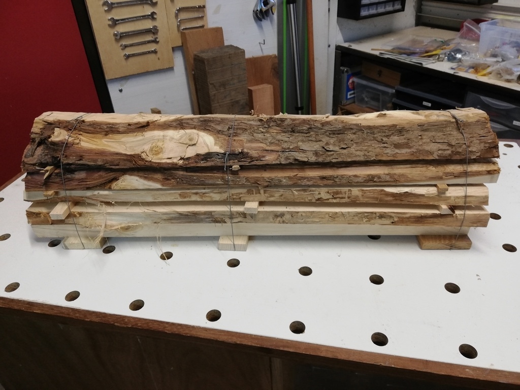Pour les heureux boiseux possesseurs d'une scie à ruban, il est possible de transformer des déchets de tailles en petites planches.