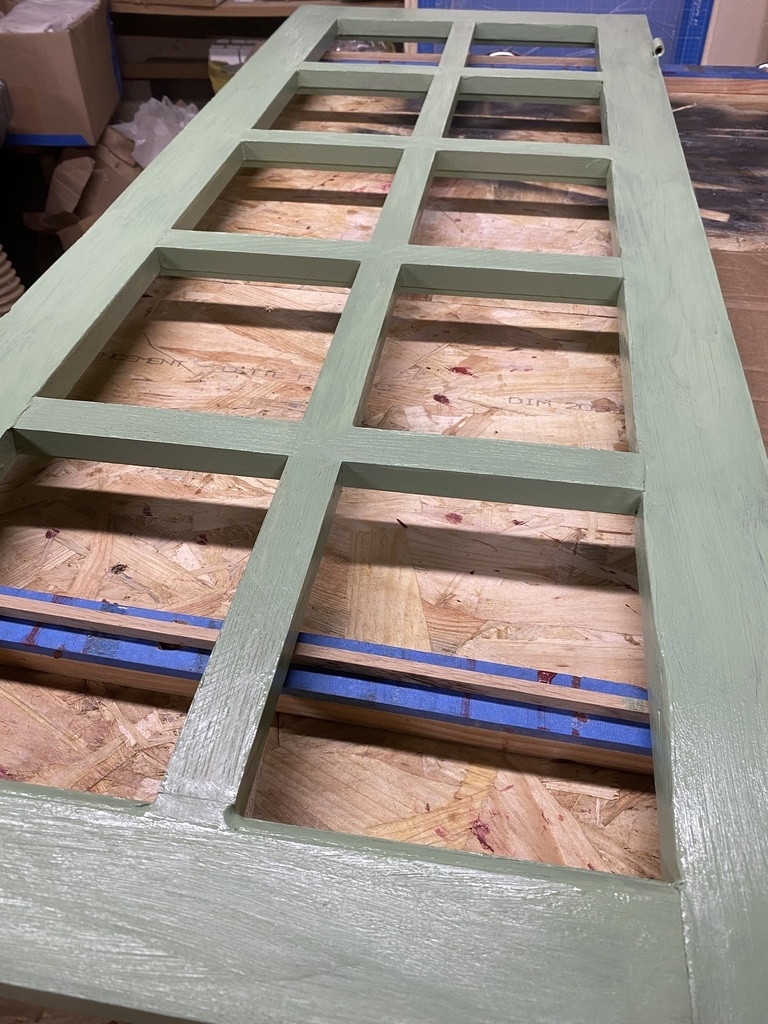 Mise en peinture, 3 couches, et pose des carreaux au mastic .