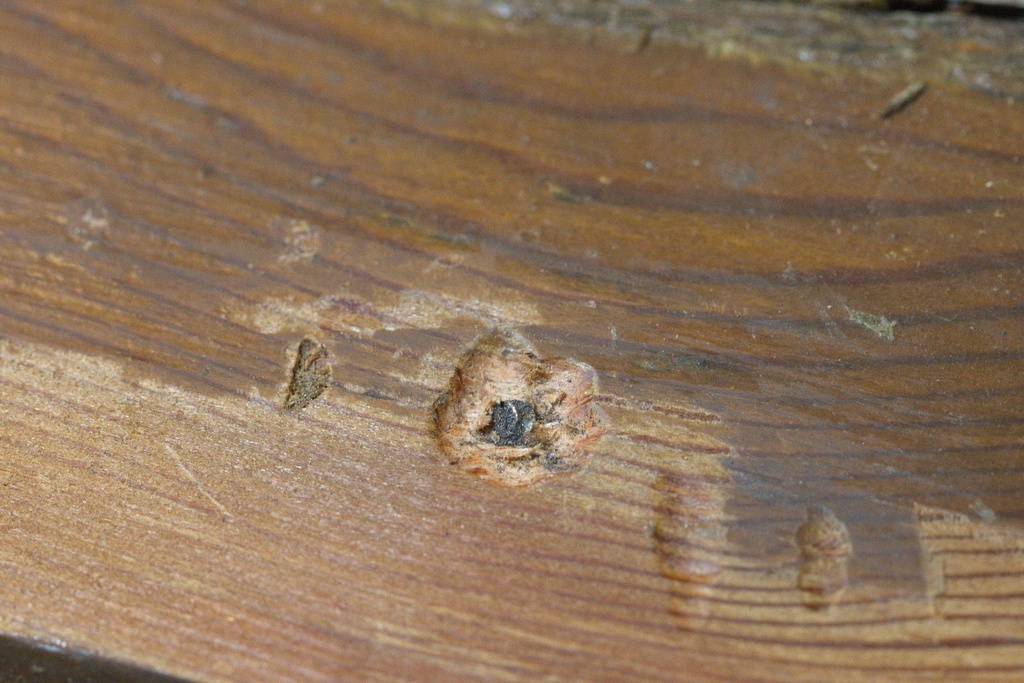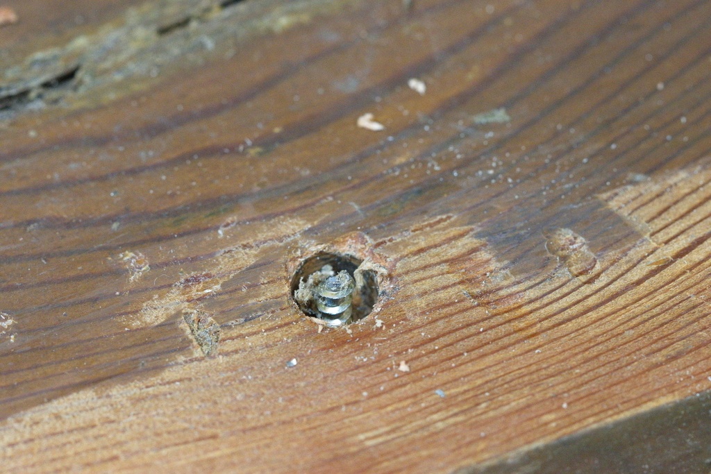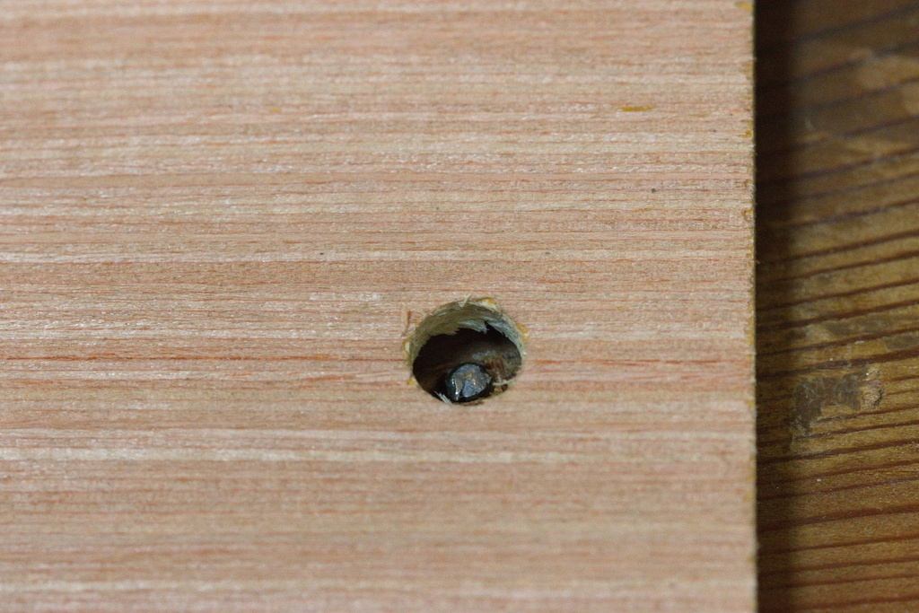Pour cela on peut creuser à la gouge une cuvette autour de la vis (ou clou...) ; on peut aussi percer dans une planchette un trou au diamètre du trépan. Au moins pour entamer le perçage.