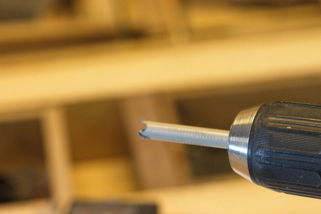 Une solution est de fabriquer un trépan avec un tube en acier. C'est une solution qui coûte peu d'argent et peu de temps (15mn).