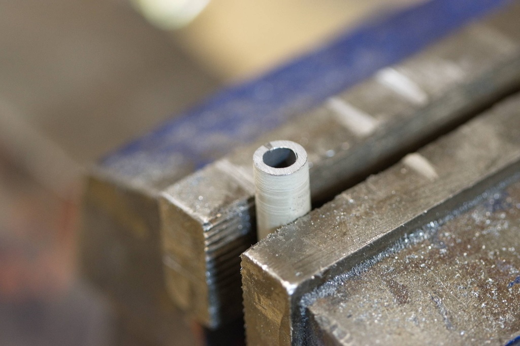 Couper un bout de tube en acier, peu importe la qualité de l'acier, un tube acheté en GSB conviendra. Celui que j'utilise vient de ma «ressourcerie» personnelle : le tiroir à «ça pourrait servir»...