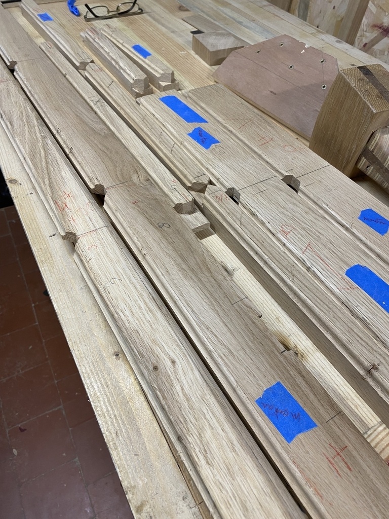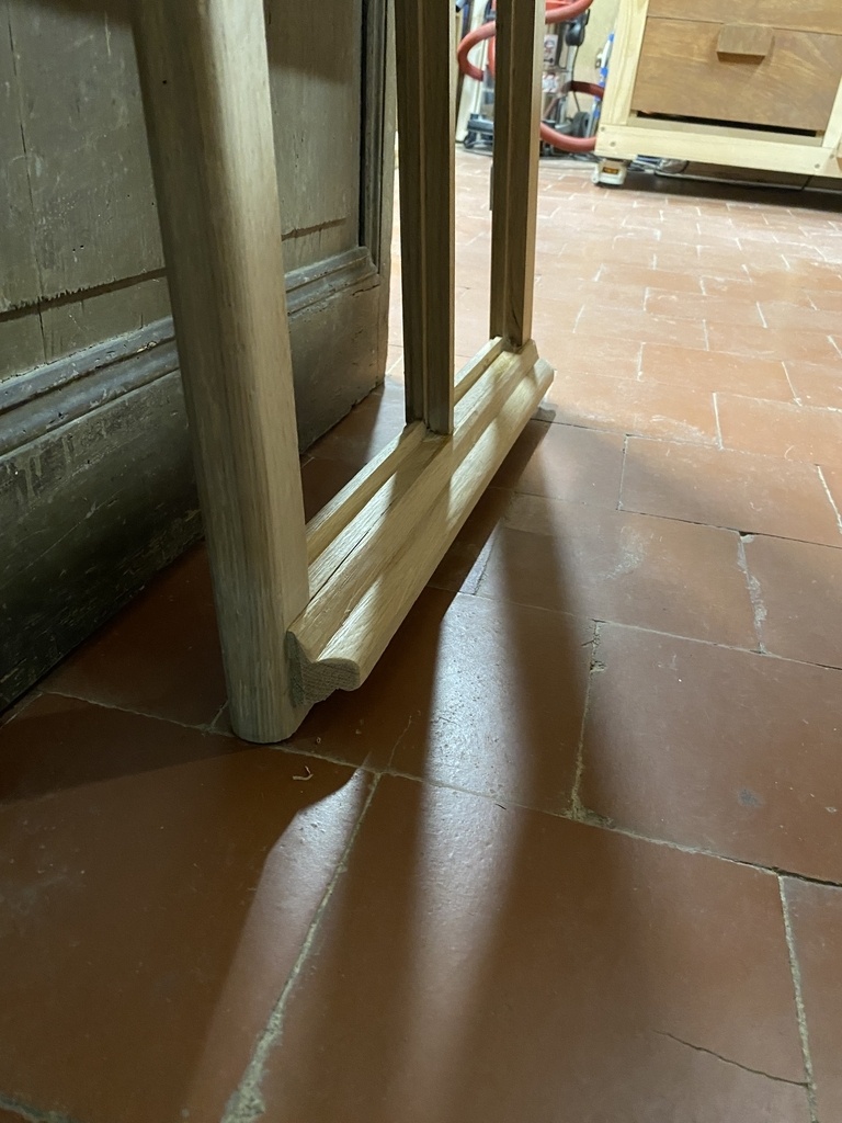 Avant de positionner les traverses verticales, je moulure toutes les pièces .