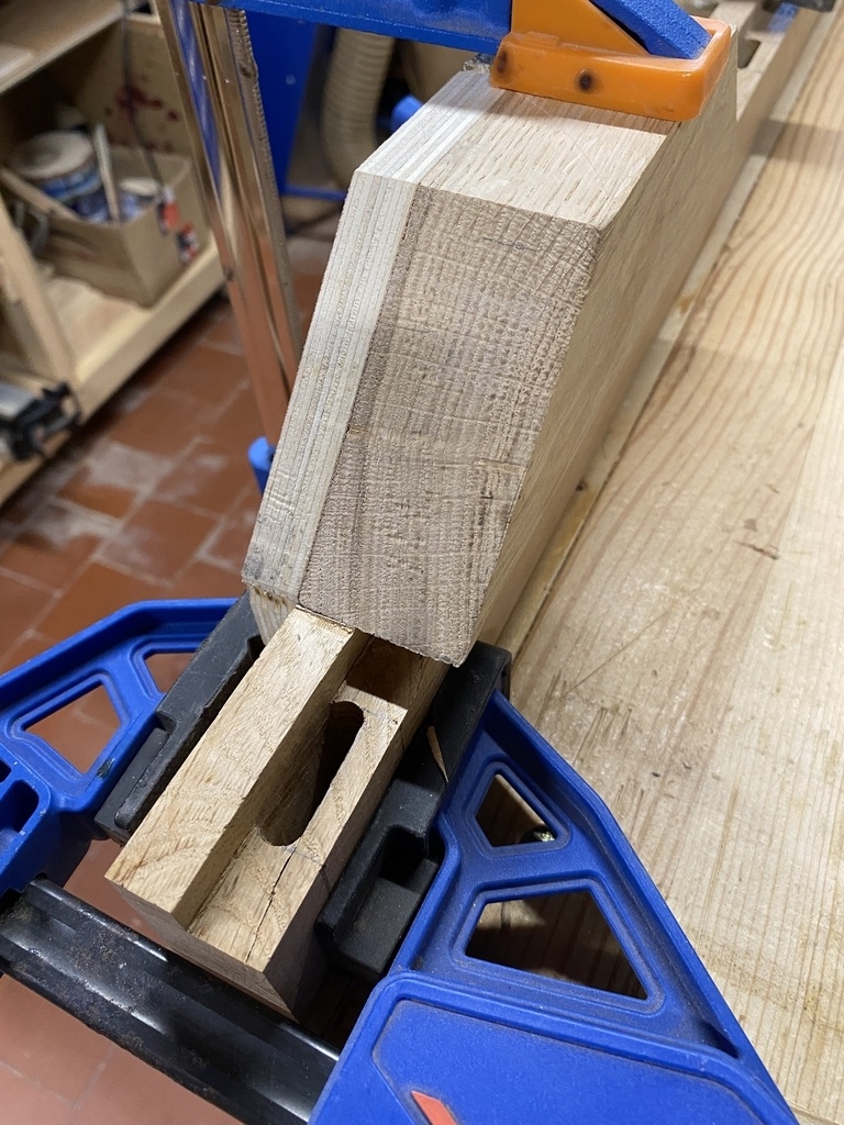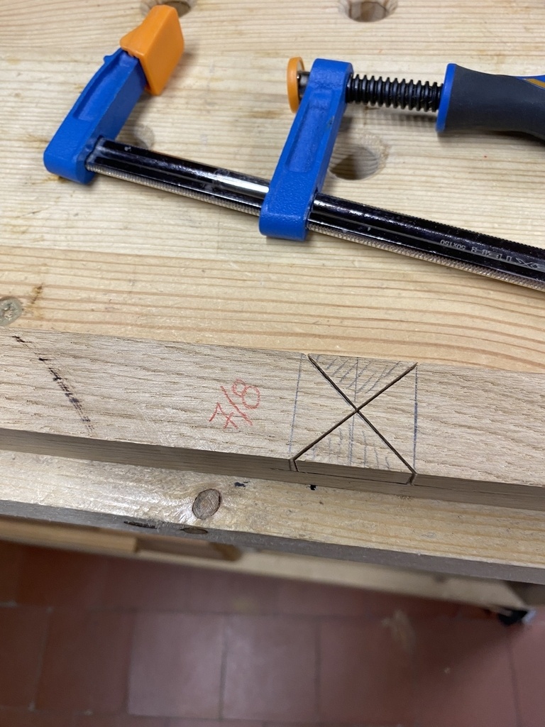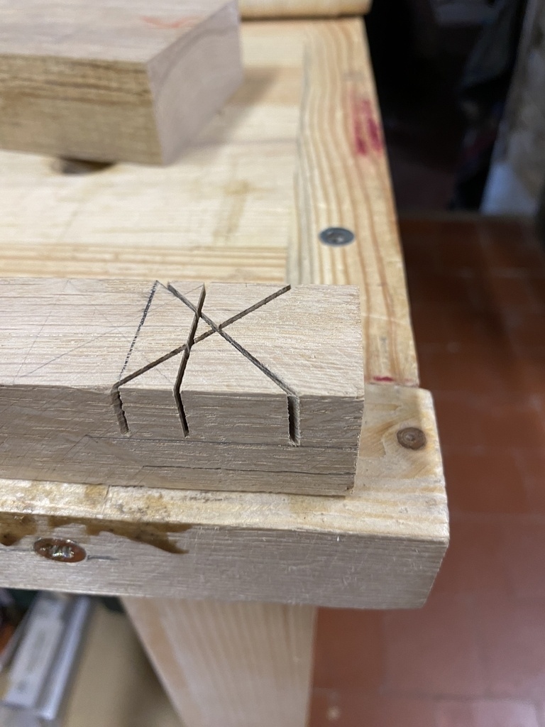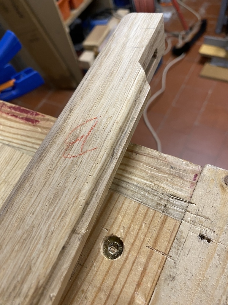 Finalement la traverse mouton ne me plait pas et je vais en faire une ; toujours au rabot .