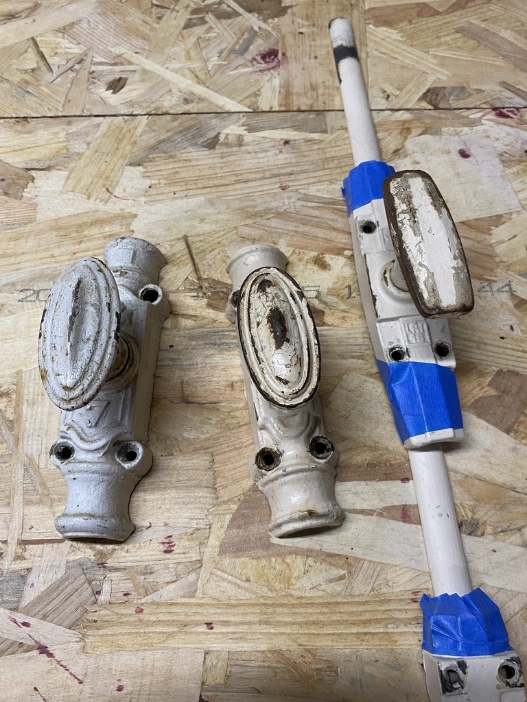 J'avais récupéré pas mal de crémones provenant des fenêtres récupérées à la déchetterie ; je fais mon choix .