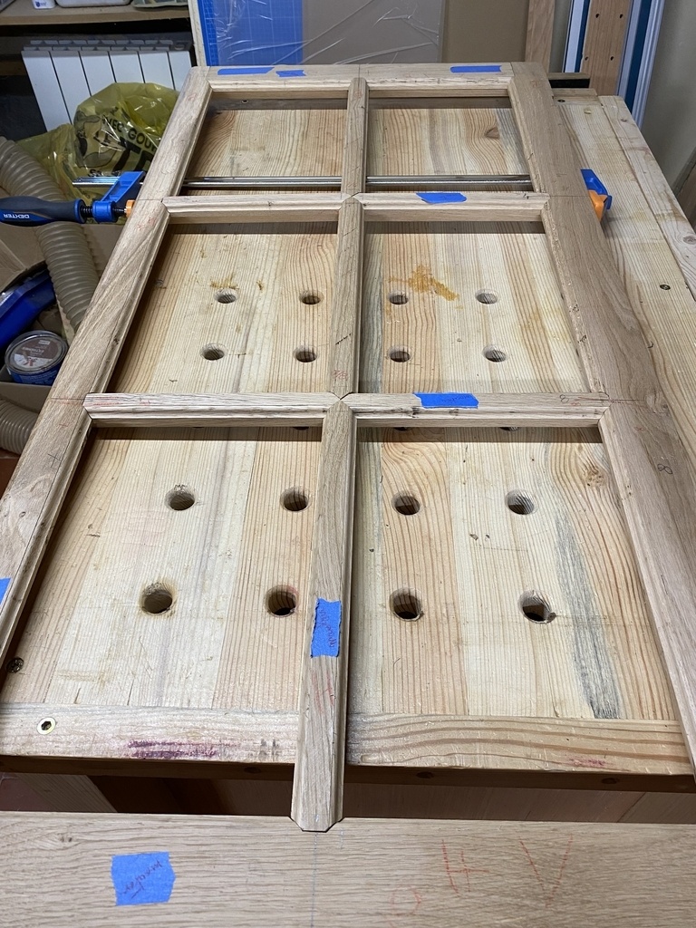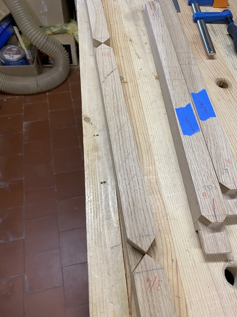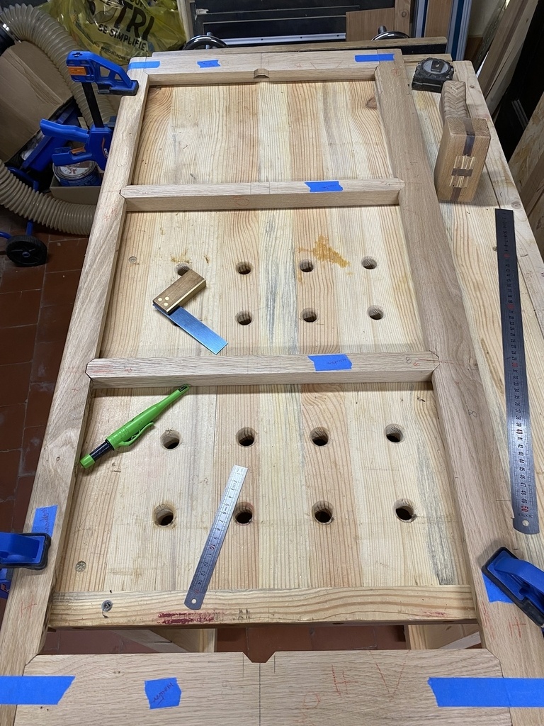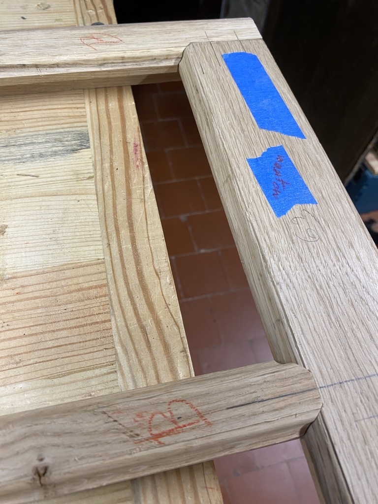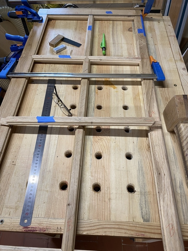 Les mortaises sont déjà faites ; je positionne les petits bois .