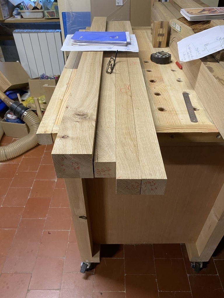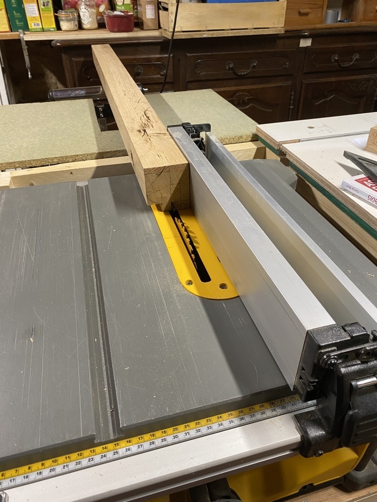 Je fais un premier façonnage avec la scie sous table et je continue au rabot de paume .