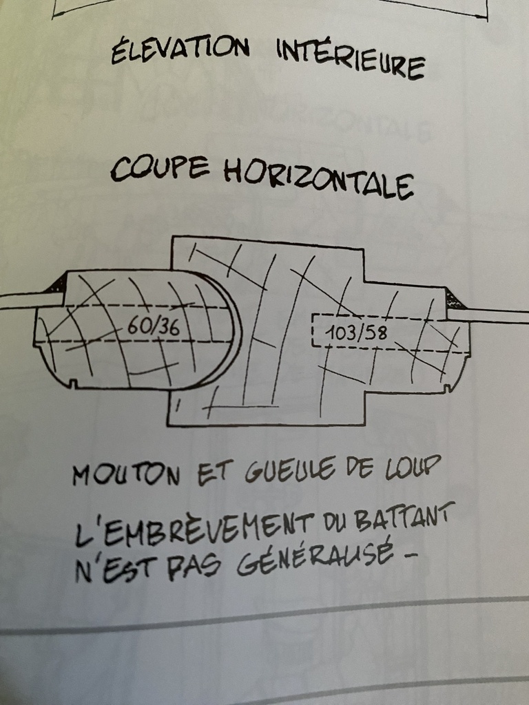 Pour la traverse gueule de loup je vais reprendre un élément d'une fenêtre récupérée à la déchetterie car je ne sais pas faire avec mon outillage ; pour le mouton j'hésite .