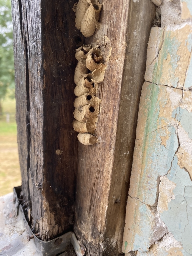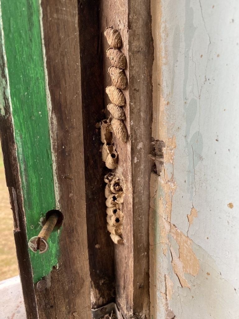 En démontant le vieux cadre je vois que cette pièce a été réellement habitée par ... des guêpes maçonnes ; Je découvre : google.com/sea...guèpes maçonnes.