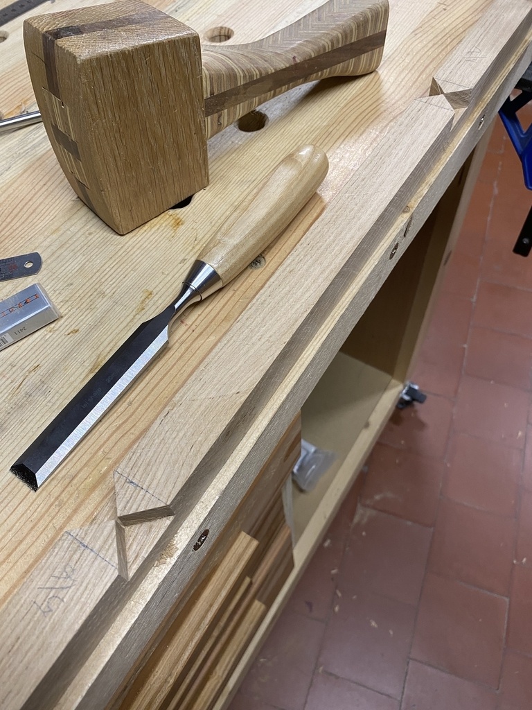 Bonjour, félicitations de s'attaquer à une fenêtre tradi. Les assemblages sont perfectibles mais vous vous en êtes plutôt bien sorti. Pour tomber vos onglets de ravancement à la boite à coupe, vous devriez trouver une scie Sterling reversible, c'est très efficace.