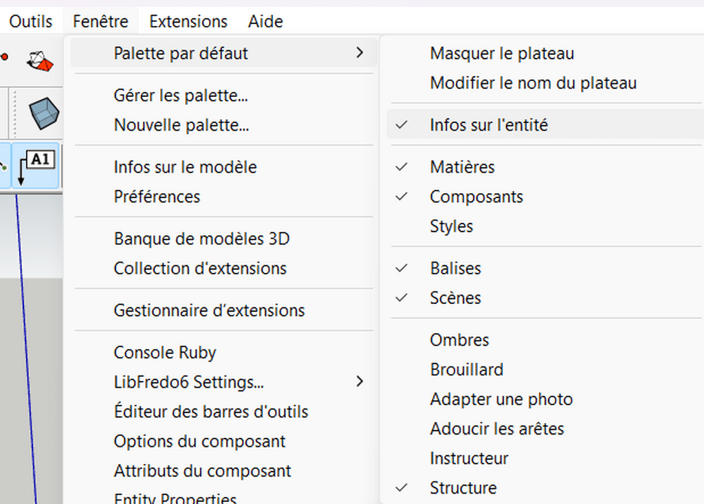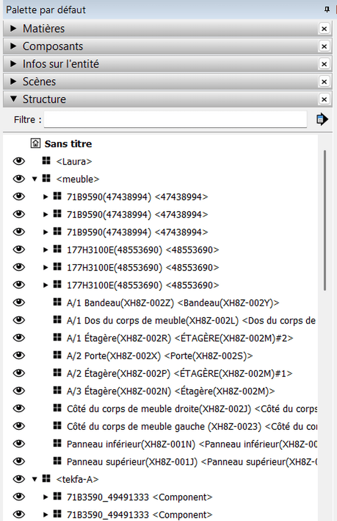 • Activer l’onglet structure de la palette par défaut afin de pouvoir voir ou cacher les meubles ou leur éléments