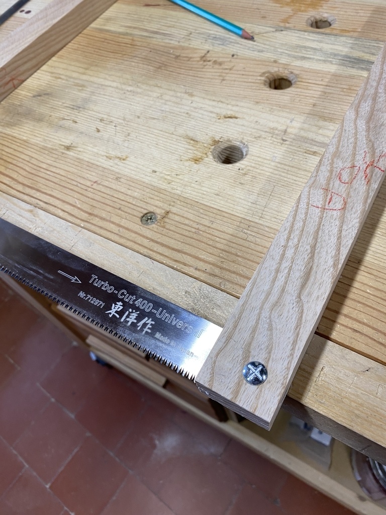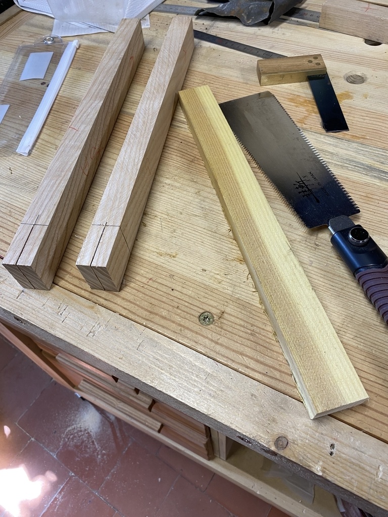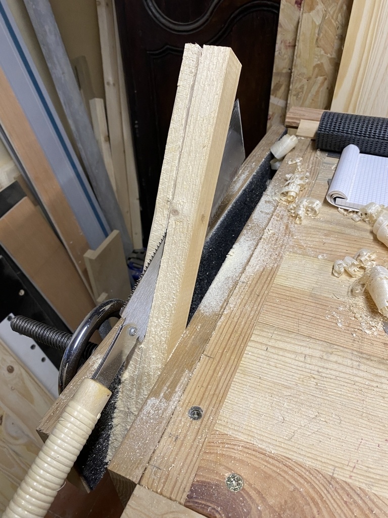 J'ai déligné les deux montants avec la scie sous table; je n'ai pas eu le courage de le faire à la main, suite à ma fracture de cet hiver .