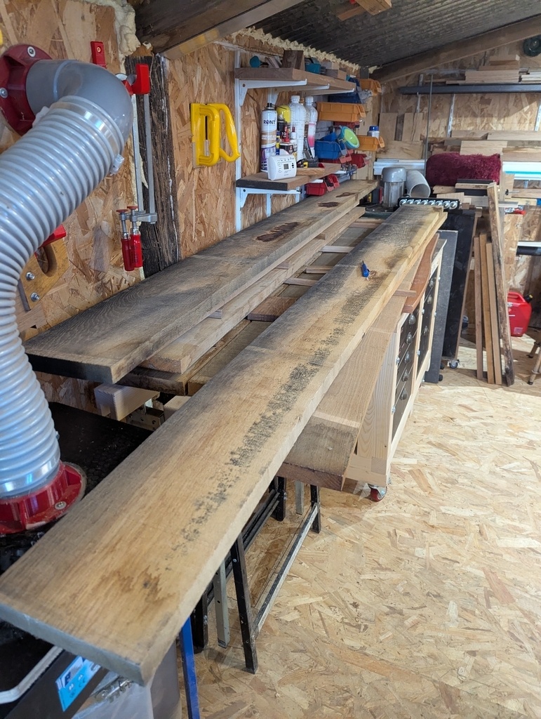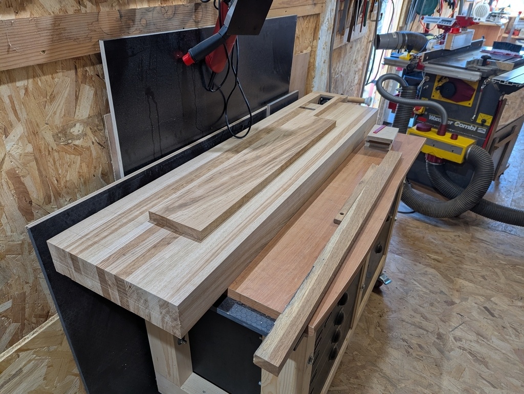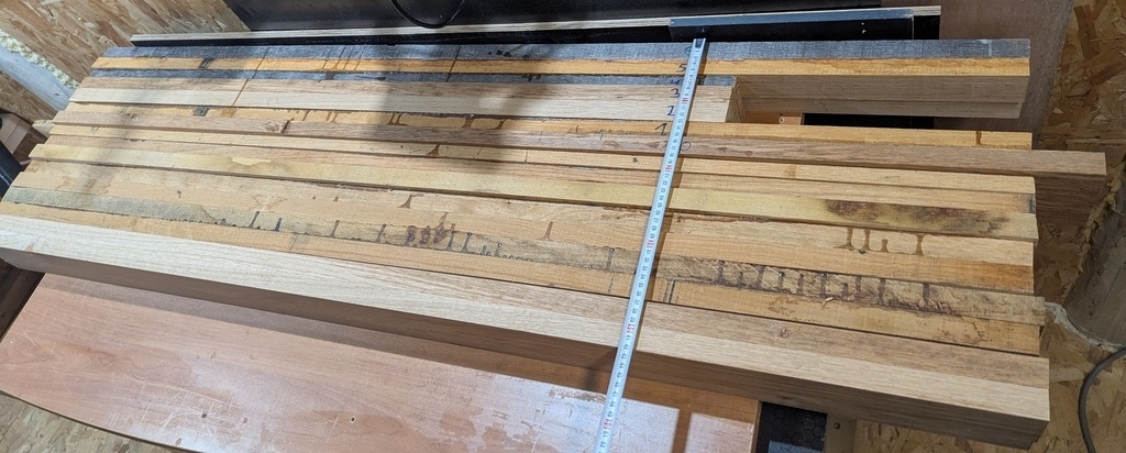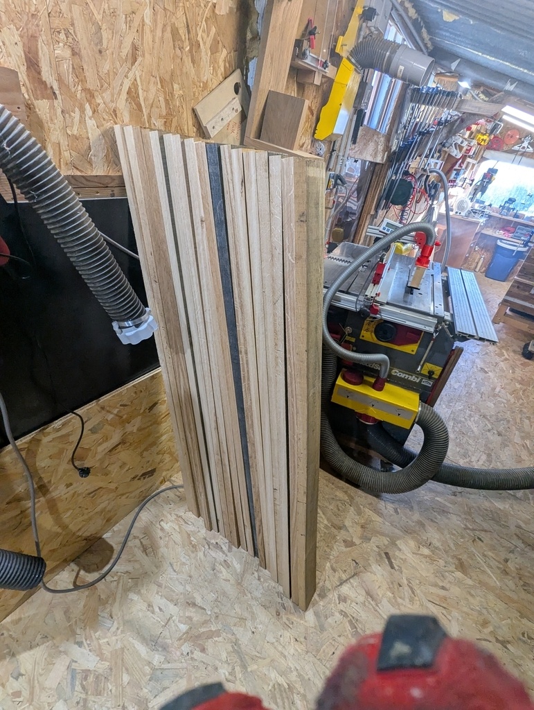 Pourquoi cette division en 18 18 4 ? Tout simplement pour (re)passer les plateaux à la dégauchisseuse (la mienne acceptant au maximum 200mm de large) si cela s'avère nécessaire.