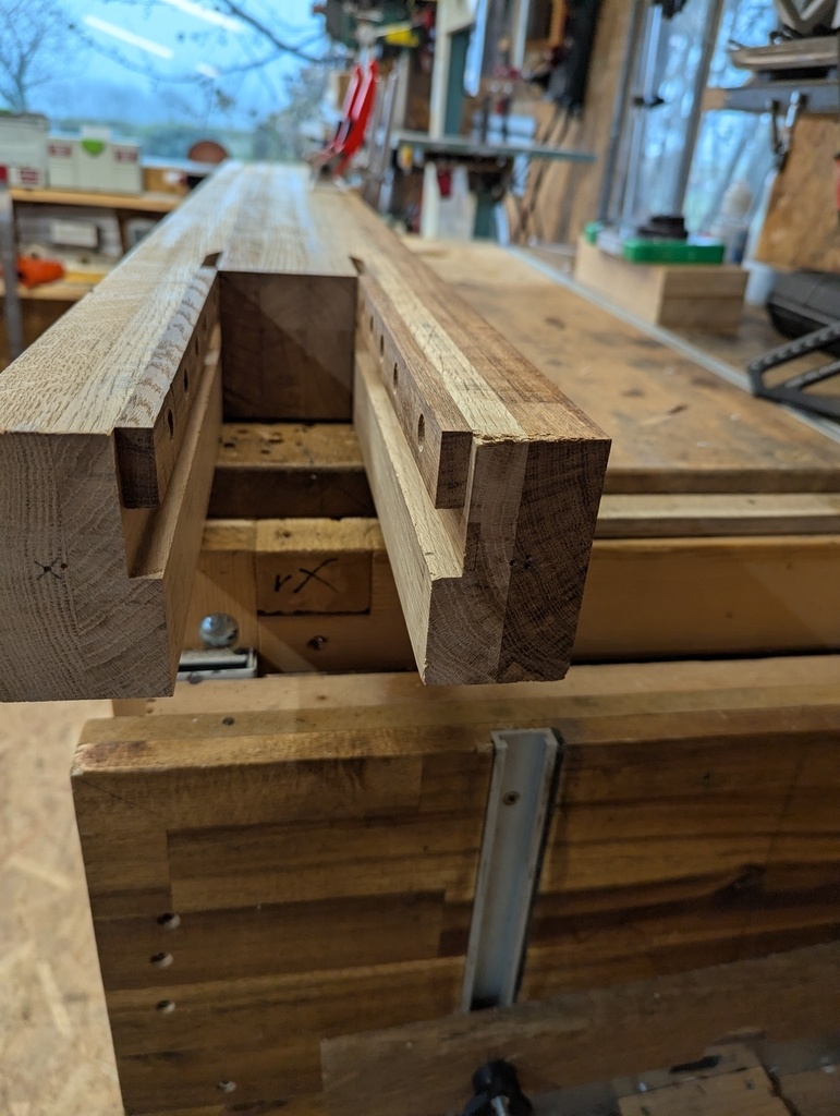 Les rainures ont été réalisées à la toupie. De fines baguettes ont ensuite été ajoutées et vissées, sans collage, afin de permettre un remplacement ou une réparation ultérieure si nécessaire.